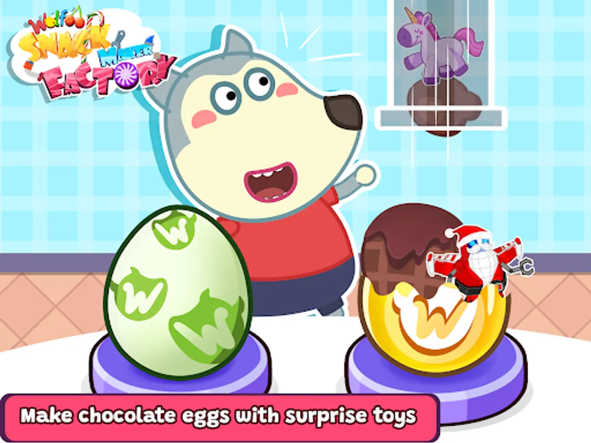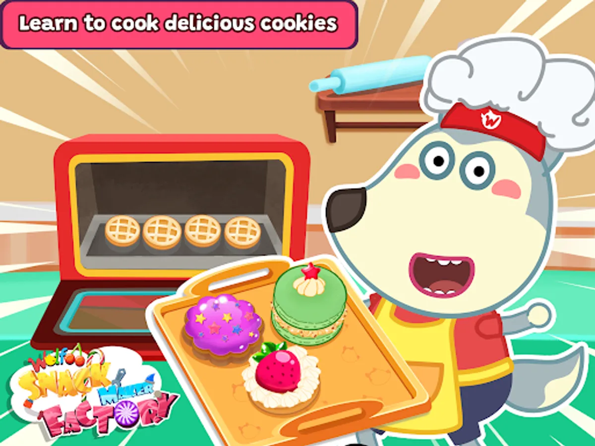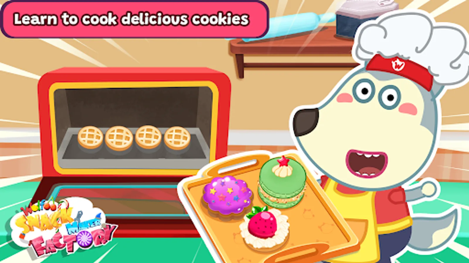 π³ Your baby can play many cooking games but in Wolfoo Cooking: Making Snack, childrens will be running their own food factory. Learn the production process and participate in the cooking with delicious snack recipes such as: cookies, apple pie, fruit jelly, seaweed, surprise chocolate eggs,... Vivid and vibrant graphics help entertain the kids and make cooking more fun. Wolfoo makes snacks to help develop children's recognition, concentration, hand-eye coordination, and memory. Let's step into the virtual snack factory world with Wolfoo!