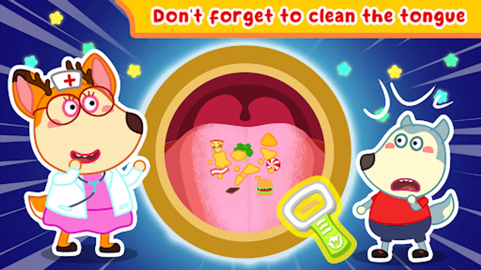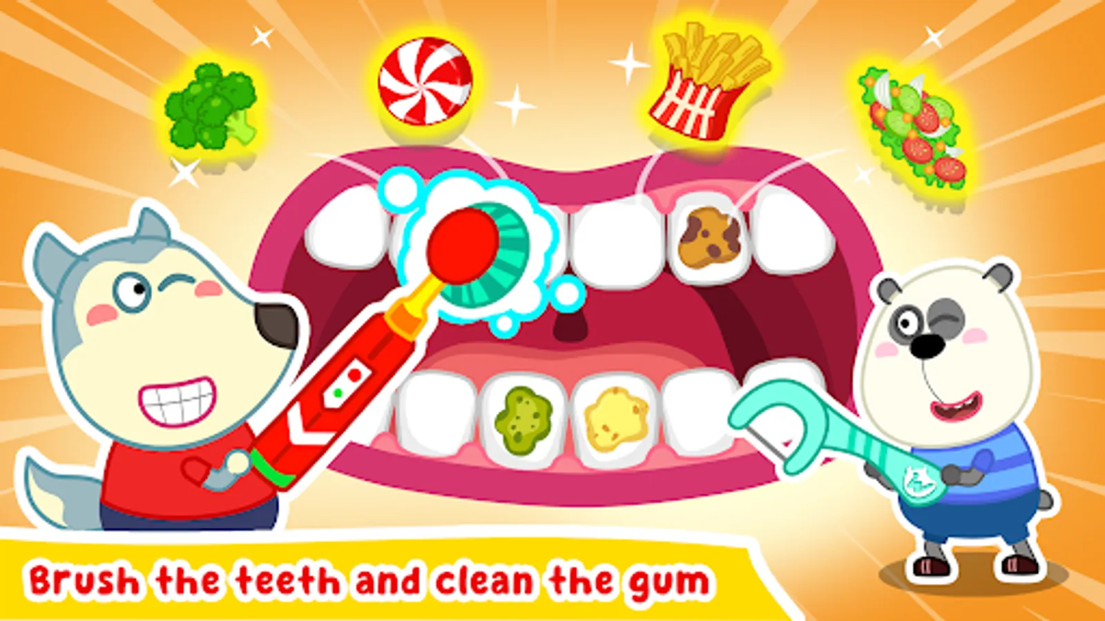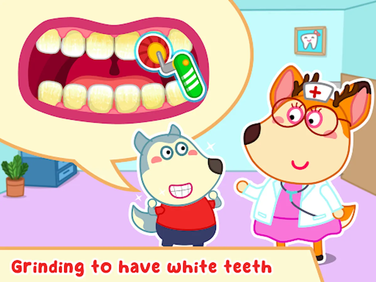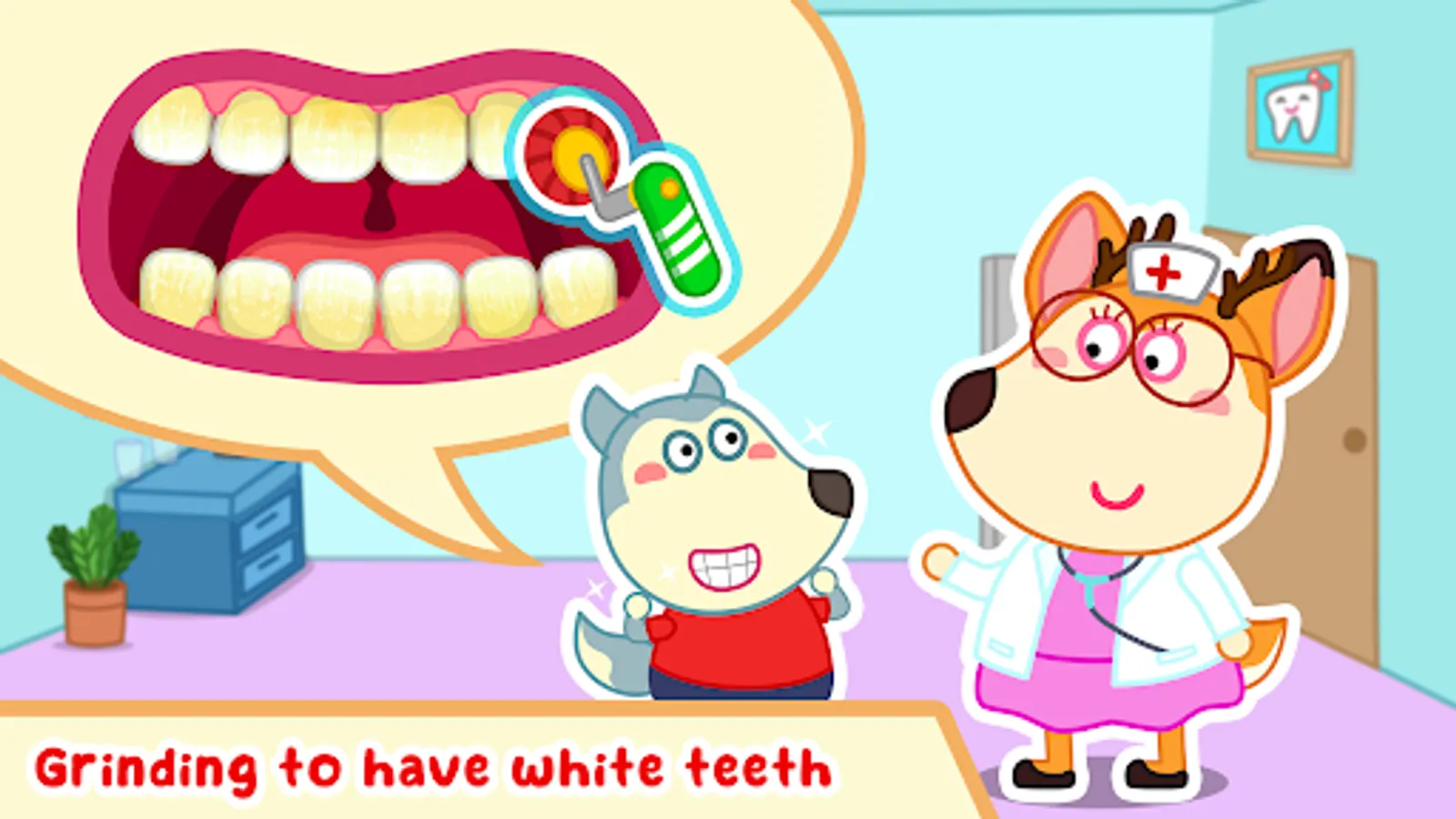 Kid’s dental care, family dental care is very important. Let's show kids how to clean their teeth in the right way, wear braces on their teeth, and take care of their teeth every day as dentist's advice. Come with Wolfoo to visit dentist’s room at Wolfoo kindergarten, where the doctor dentist checks your teeth and takes care of them. This tooth game help Wolfoo and Lucy check their teeth well every day before go to Wolfoo preschool. We all learn about dental care at Wolfoo kindergarten, but in this Wolfoo dentist, dental care game, we meet doctor dentist, defeat bacteria by mouth watering, remove decayed tooth, try tooth extraction, whiten teeth, and clean tongue, mouth, teeth, gum like in a dental adventure. Just in this Wolfoo dental care free dentist game, there are so many mini games to try. Let's download this family dental care game and enjoy with Wolfoo and Lucy.