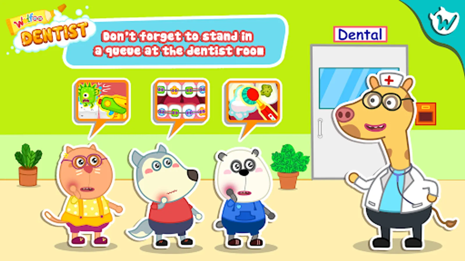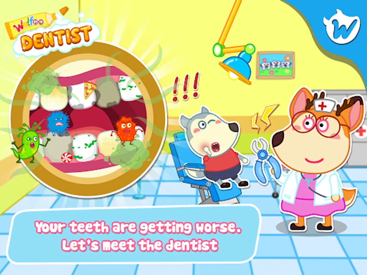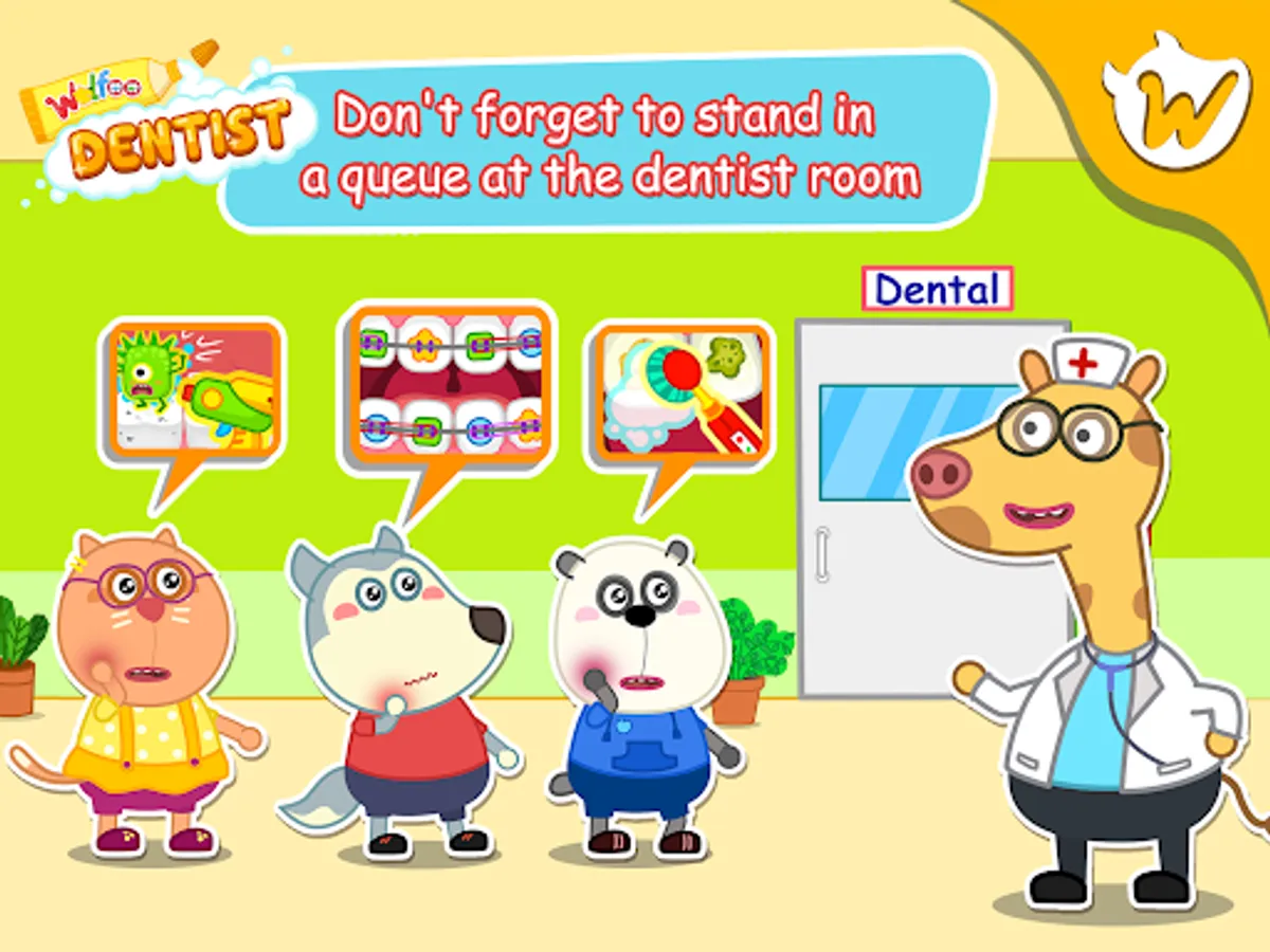 Wolfoo Dentist: Dental care, a free dentist game about family dental care, tooth care. Wolfoo is my family dental care, my dentist and my dental care friend, he helps you learn about mouth care, tooth care, learrn how to brush your teeth & learn about dental care at kindergarten, prek, and preschool like a doctor dentist. This is a dentist games doctor makeover, a dentist game teeth care clinic that you should try to play and learn at preschool dentist.
