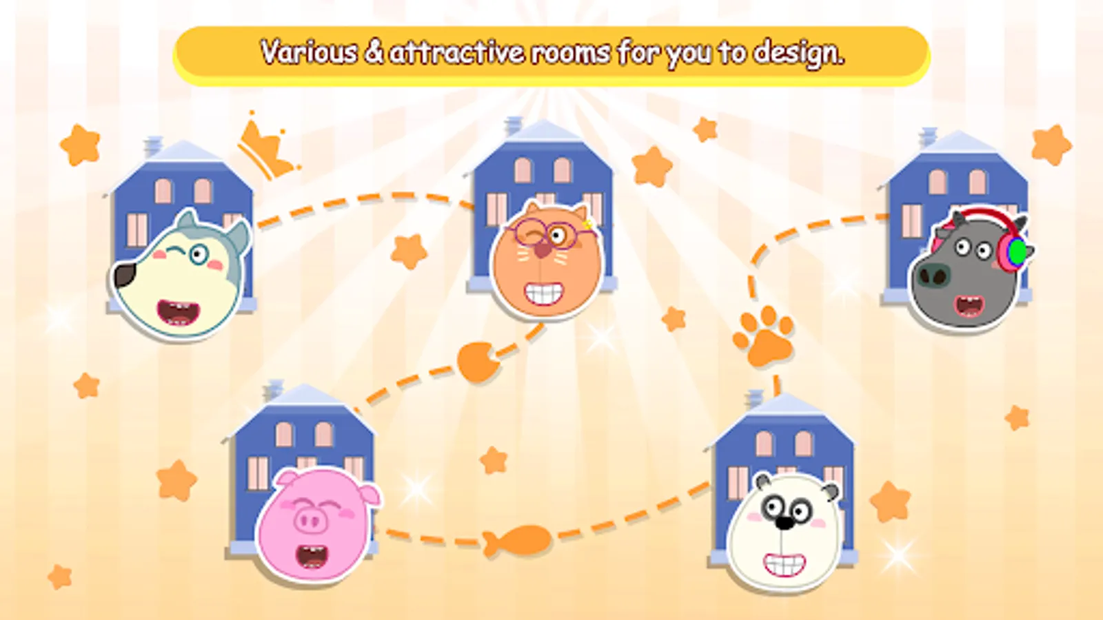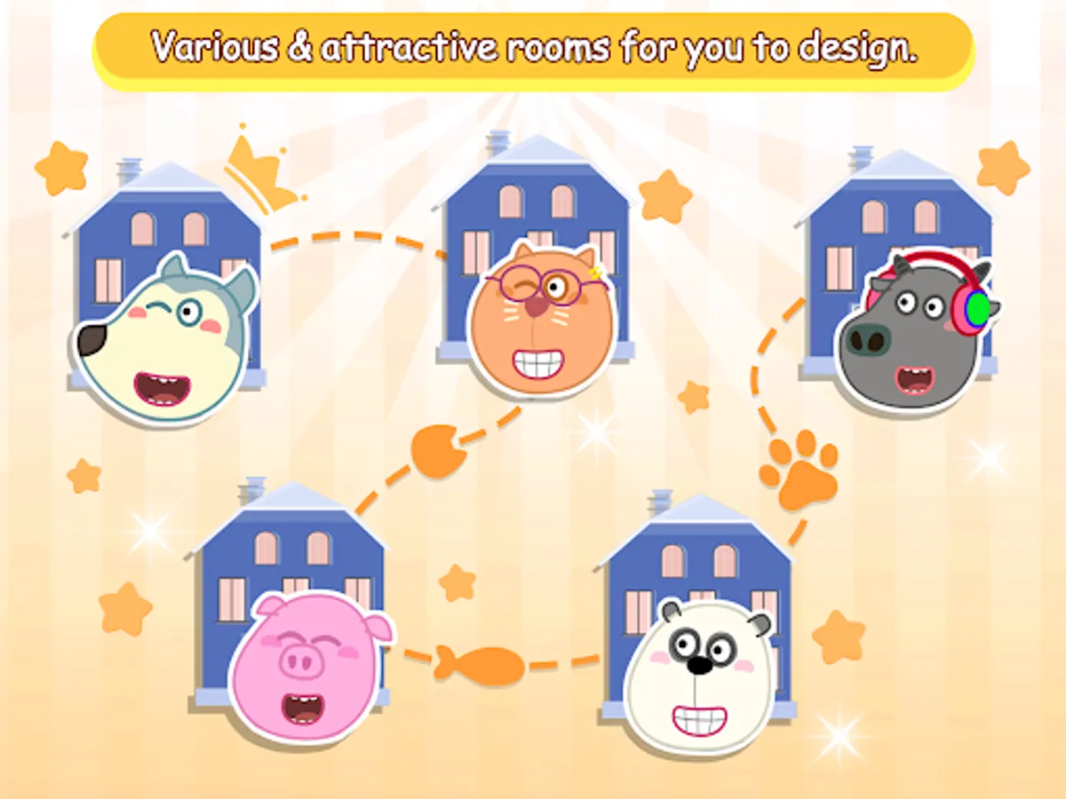 π Wolfoo and each friend have a mission to design living rooms and bedrooms in the house. Let's give them a hand to decorate the room and complete the dream house!