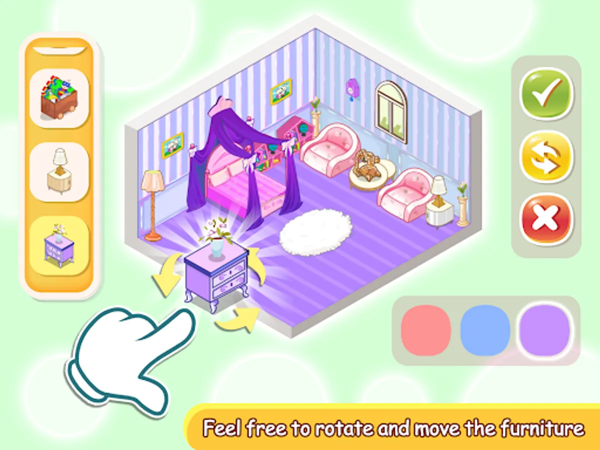 This is a fun house design games for kids will help them to give ideas for home decoration, and interior design aiming at training their curiosity & creativity about objects in the house.