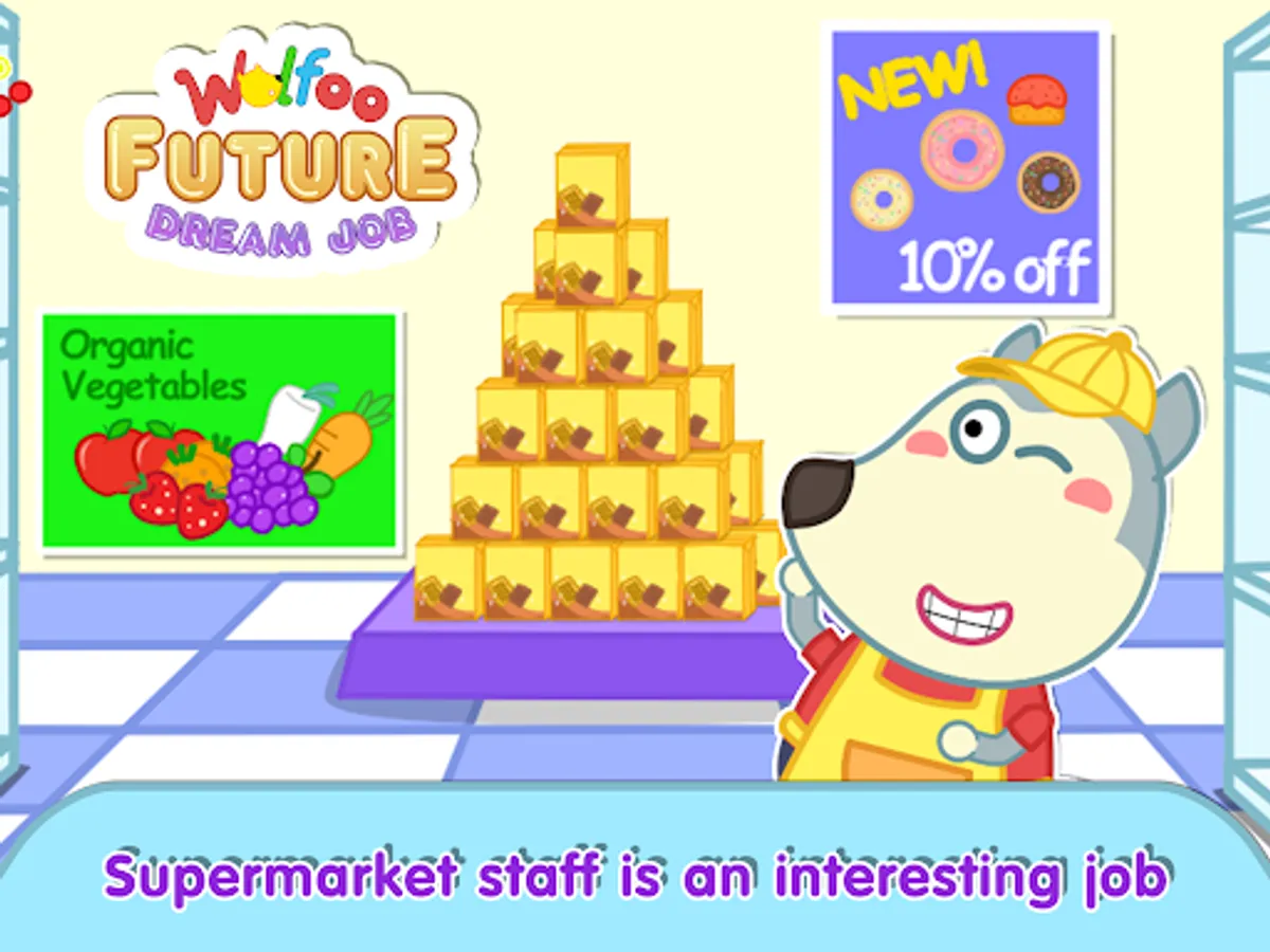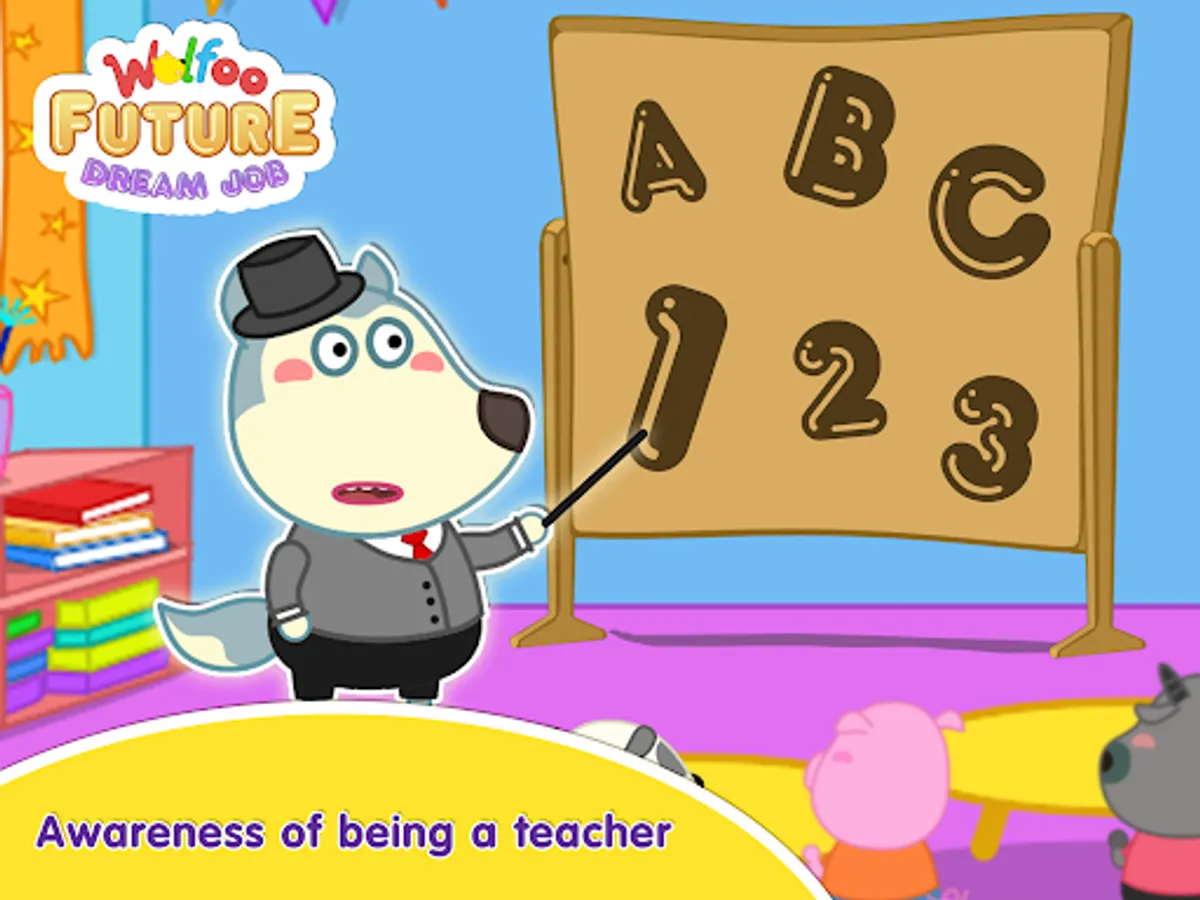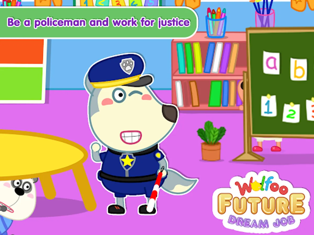 This game is a chance for you to try to handle any jobs that you like. With this jobs game, you can choose a favourite dream jobs when you grow up. Just download it for free, then enjoy it in your freetime with family. It is a fun game for kid at kindergarten, preschool, prek, elementary school to play and learn. Let's have fun with Wolfoo and try all different kinds of jobs.