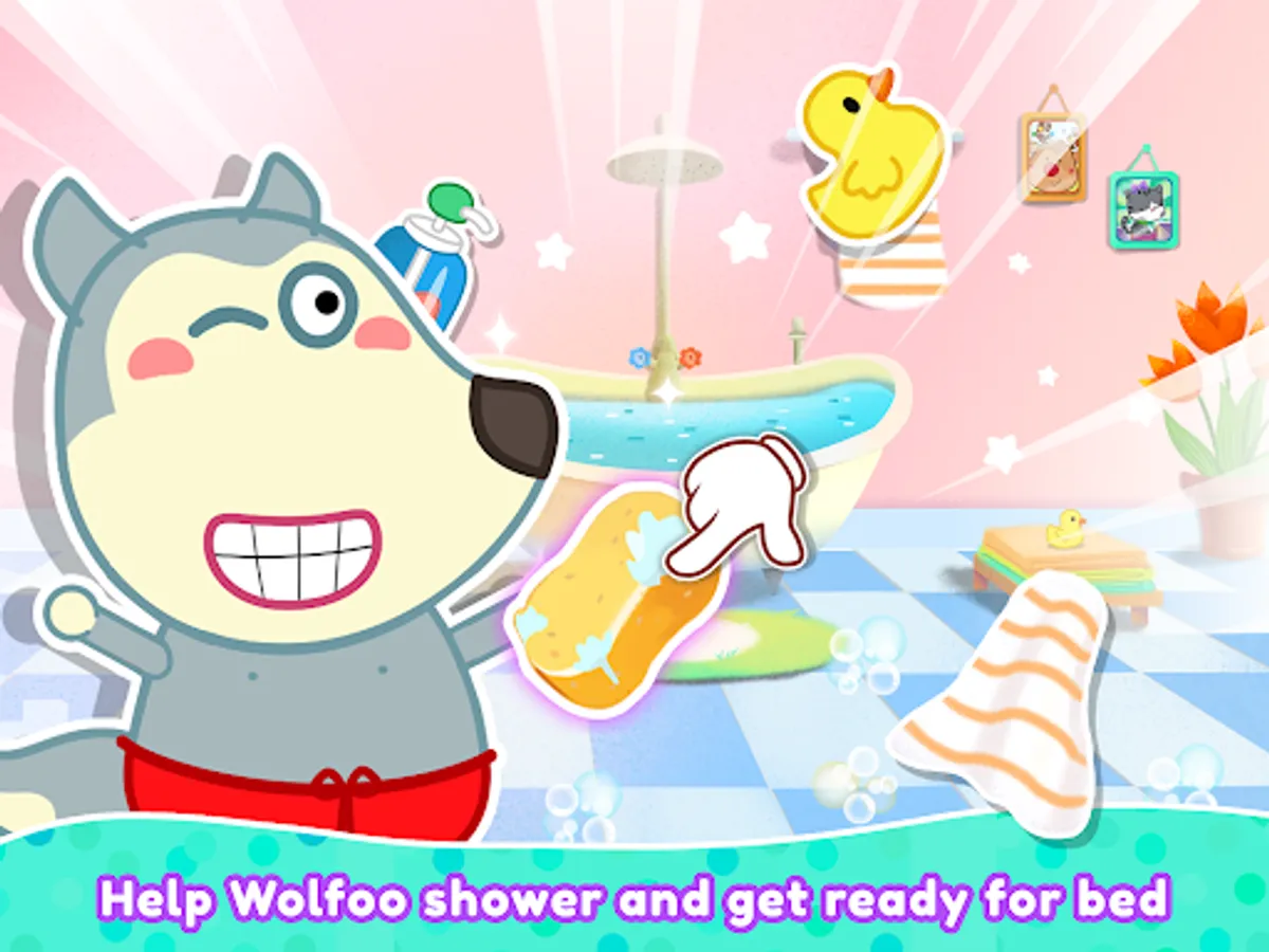 Play tic-tac-toe β Cook jam with fruit β Prepare Wolfooβs bath β Help Wolfoo fall asleep by counting sheep