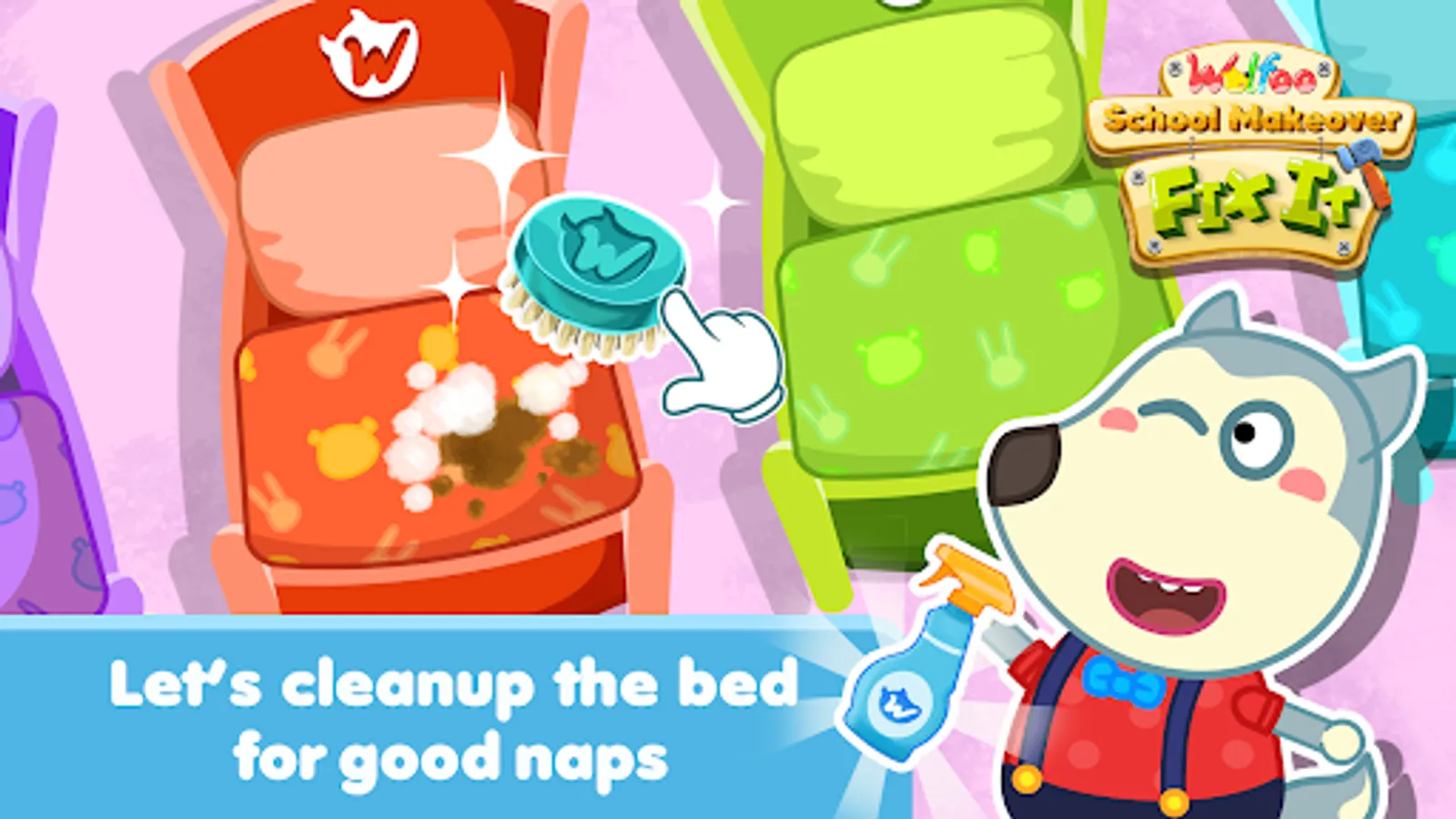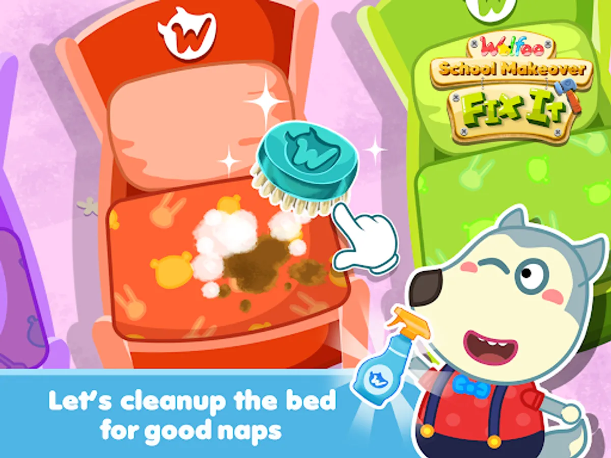 If you are a fan of fixit, fixes game, home design and decorating game, room makeover game, repair game, fix it game, cleanup game, homescape game, renovate game, this game is definitely for you. It is about Wolfoo's school which is very old, degraded, a messy of many students and teachers. Wolfoo fixes everything in preschool. Please help Wolfoo and friends fix it as soon as possible.