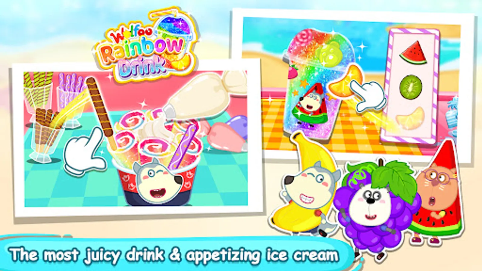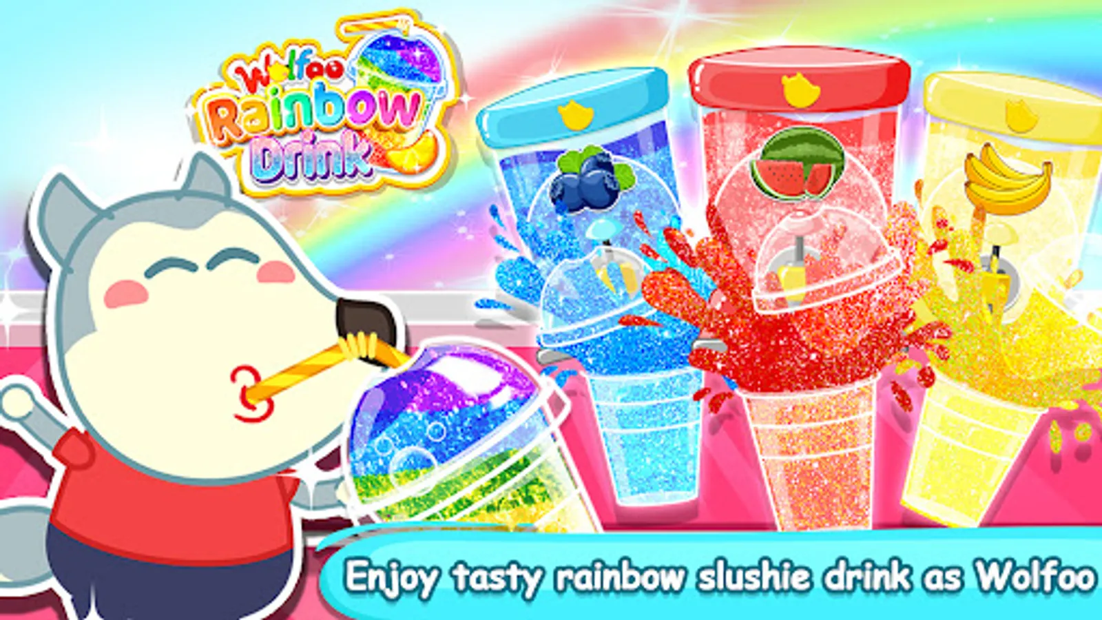 🍨 Kids, do you want to make frozen smoothies by yourself? Wolfoo Make Rainbow Drink will teach girls how to make more slushy rainbow colors in the juicy game! Have you ever wanted to be a slushy maker and rainbow it in the drinks game before? Well, here is your chance! You can be the smoothie queen in the girl games! Join our rainbow game to make your dream come true!