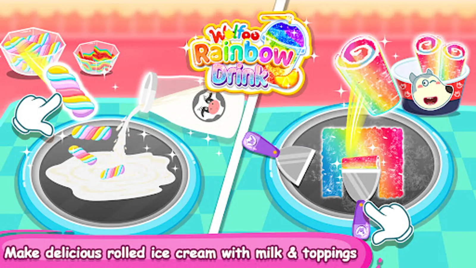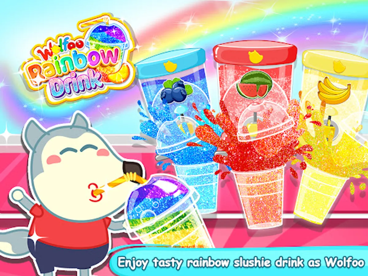 🍹Hot days of summer are coming, kids! Why not refresh yourselves with this rainbow slushy ice drink maker game. This Rainbow Drink Maker game has so much slushy magic. Try and make some yummy ice desserts with Wolfoo.