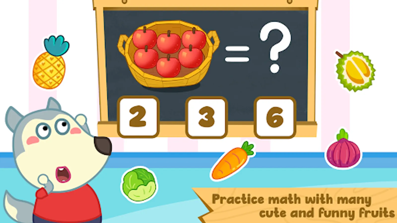 "Raise math skills and shape recognition by this learning game. It's very important to raise children's knowledge when they start going to school. This game is not only about math, it also includes many mini games: learn numbers, play with colors, classify fruit and vegetable, learn about animals. In addition, it's free to play, so let's download now to enjoy playing with your child