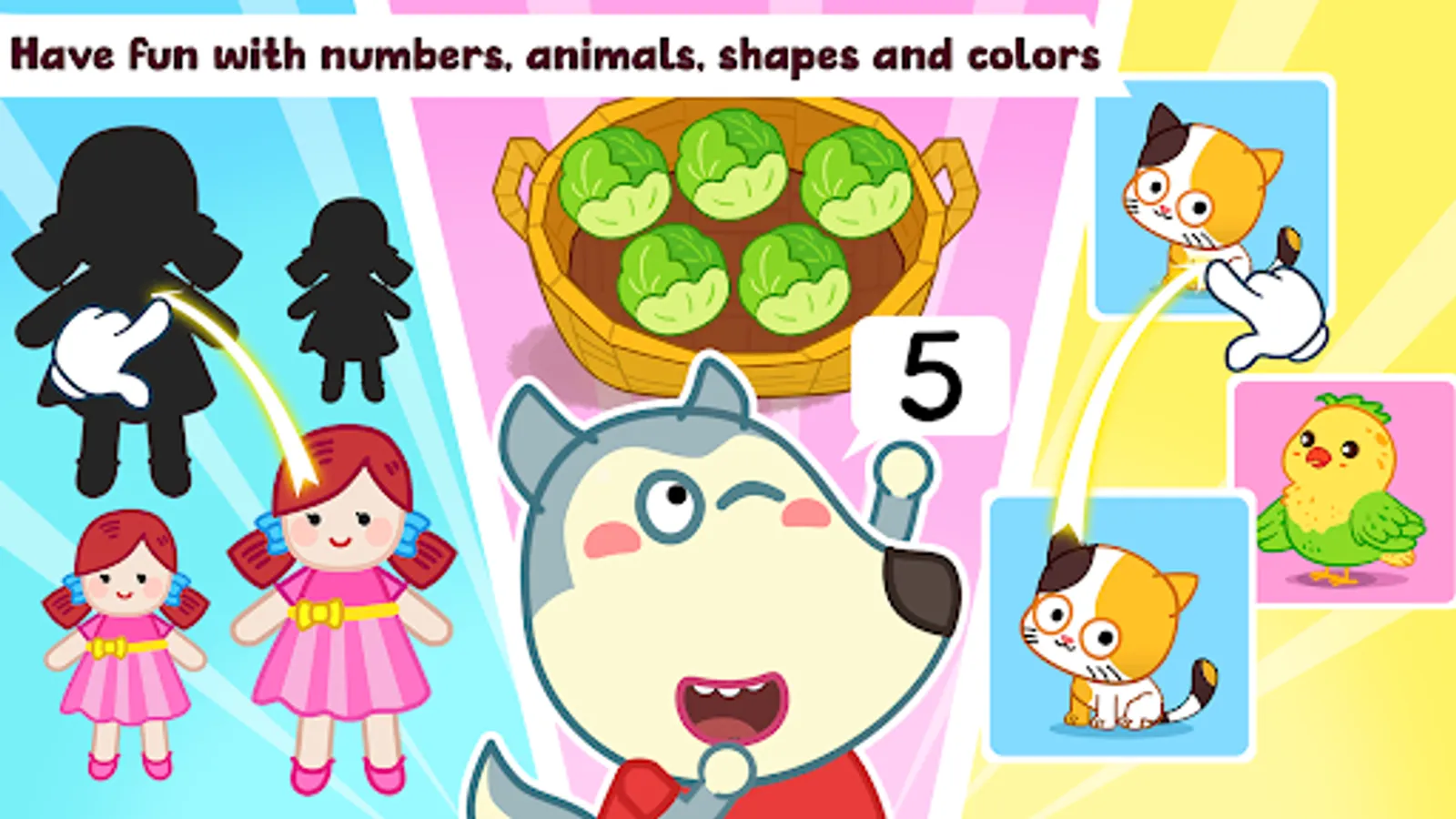 Lucy and Wolfoo will play with you, teach you many lessons of basic math, shape and color, fruits and animals. Let's have fun with these cute characters, especially kindergarten, preschool, 3-5 year old kids. This game will help you raise logic skills, intellegent, exciting of studying, experience of basic math