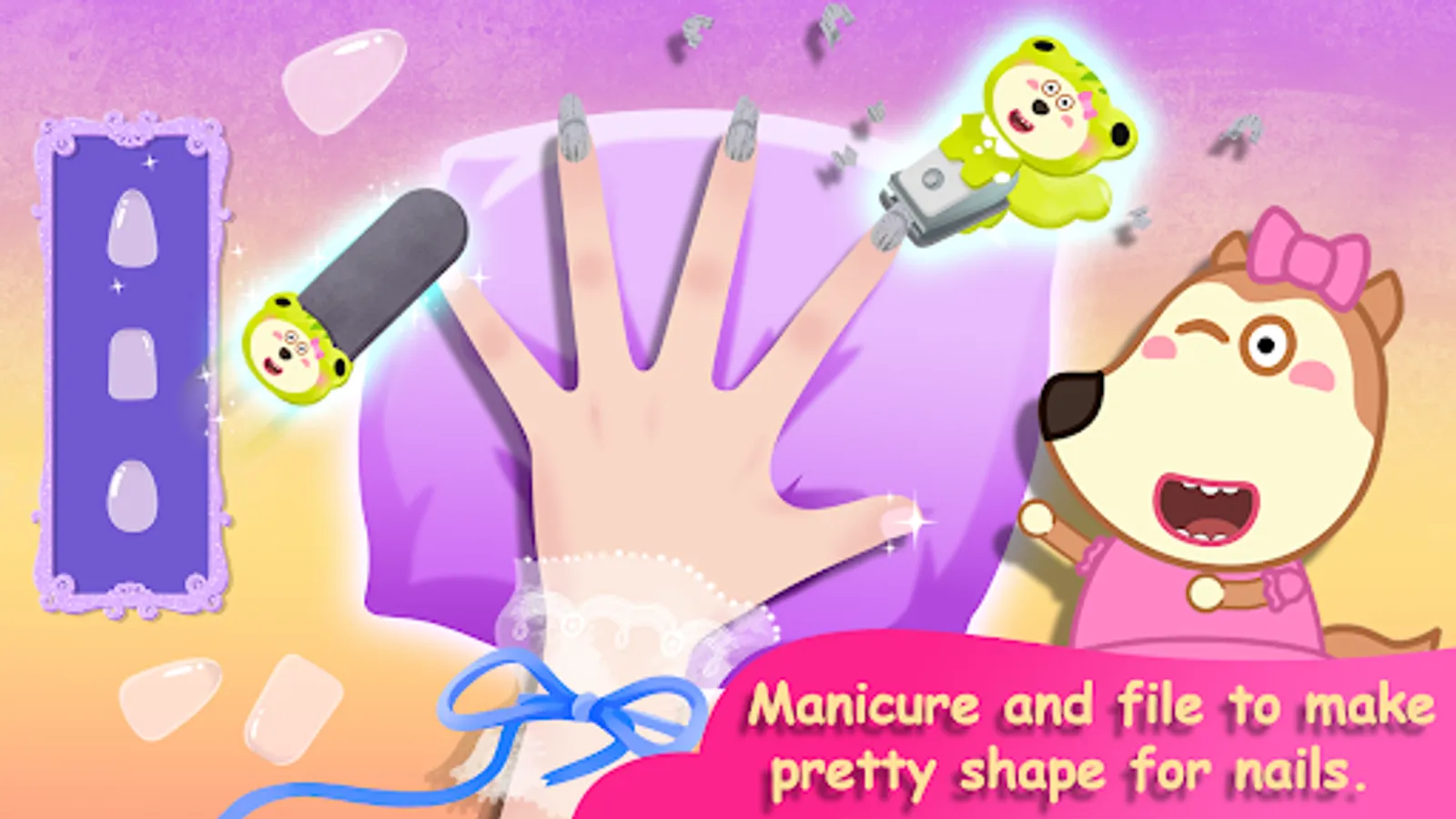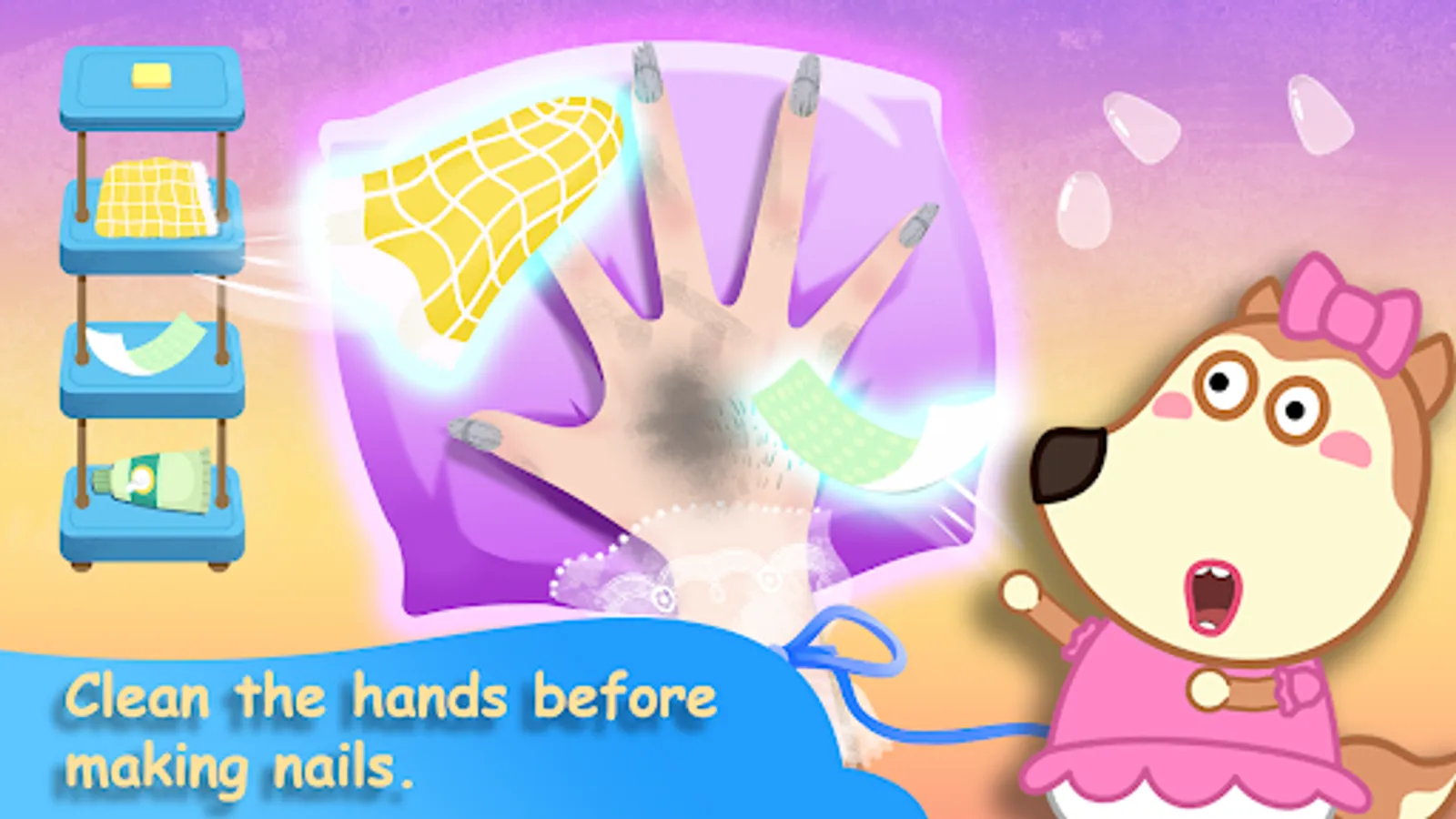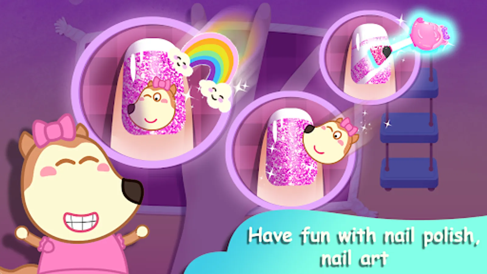 So let's come to nail salon of Lucy to clean your hands, make pretty nail's shapes by nail nipper, paint the nail art, enjoy colorful collection of nails polish, then put some cute and beautiful stickers on the nails. You can pick some rings, bracelets to wear. Let's download this nail game for girls to enjoy now