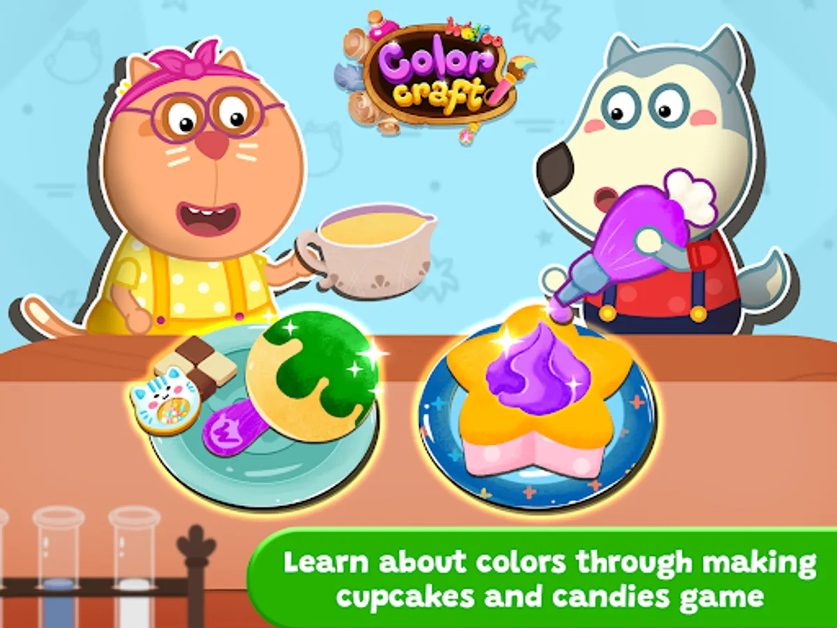 🦄With Wolfoo Learn Craft: Color Shop, your baby will experience fun educational learning games and explore Wolfoo's color shop with fun activities such as baking, candy making, finding colors, making necklace, fix pixie fairy wings, coloring, mix and match color... With our game, children can also enjoy preschool learning and improve preschool English skills. The preschool learning games are free and engaging, allowing children to learn while having fun. Wolfoo Learn Craft: Color Shop helps develop children's creativity, concentration, hand-eye coordination, cognition. In addition to learning in kindergarten, your baby will know more about how to make cute DIY crafts according to their interests.