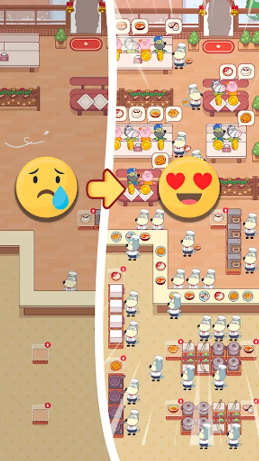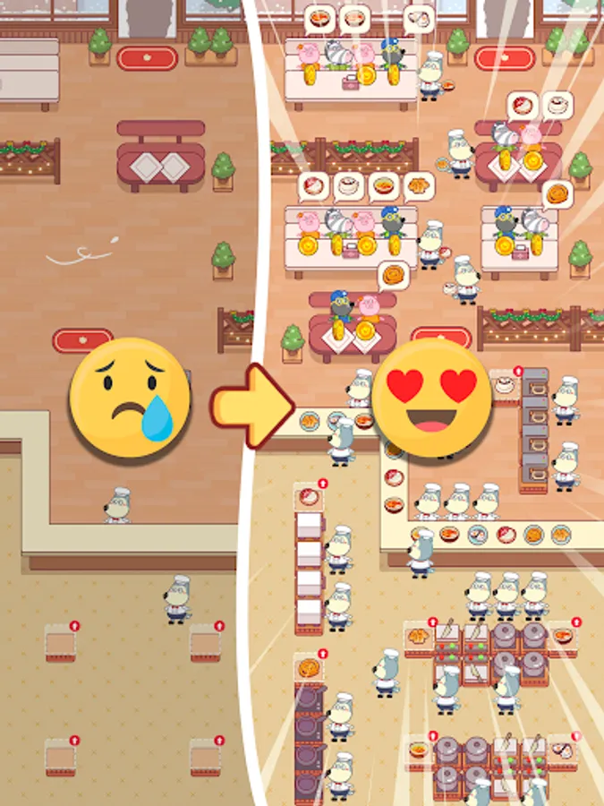 🍝 Wolfoo Snack Bar, Restaurant is the perfect idle restaurant game for those who love snack bar, cat cafe, pet cafe, and restaurant tycoon games. You can hire chefs and cashiers to help you manage your business, and find the right strategy to maximize your income. With each level, you can buy new restaurants and start selling a variety of foods, toys, and clothes.