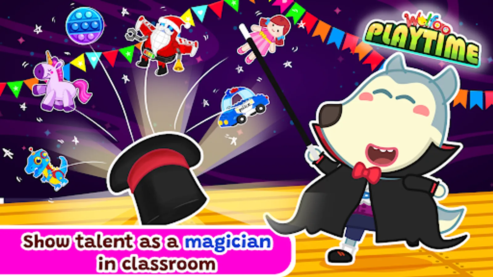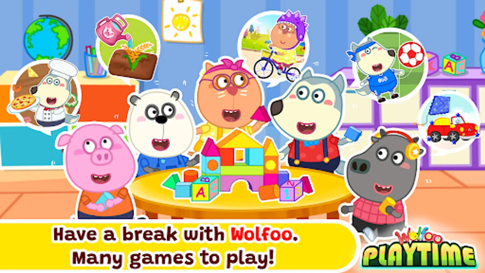Let's have a break after many lessons in elementary school, preschool, or kindergarten. Playful learning activities with classmates in schooling game is so fun and cool. You will enjoy variety of interesting games and educational activities with Wolfoo.