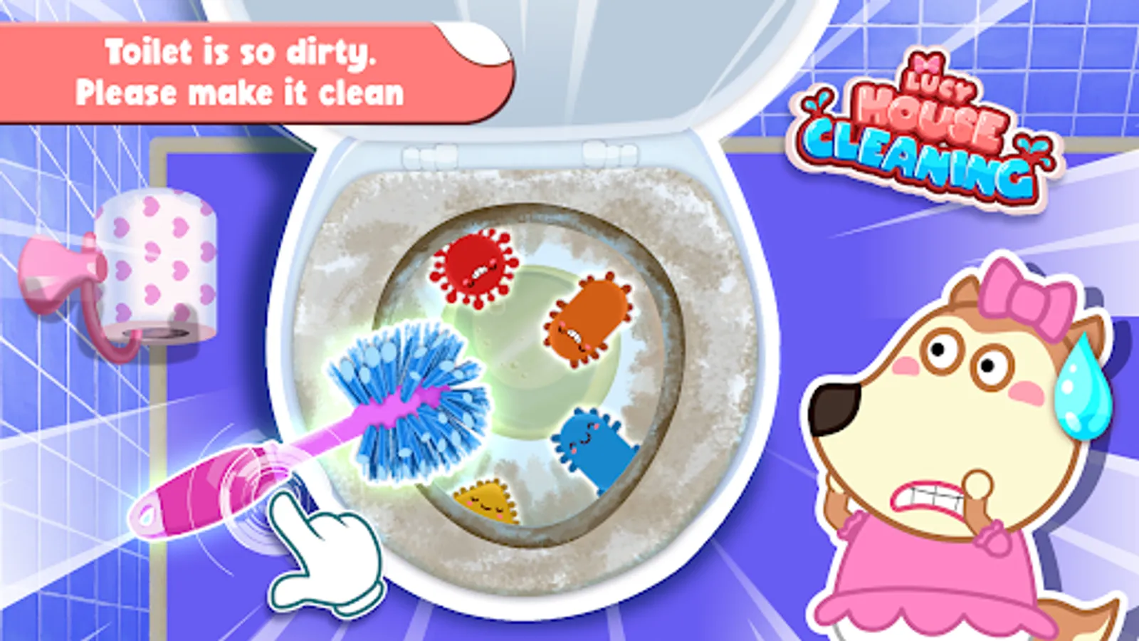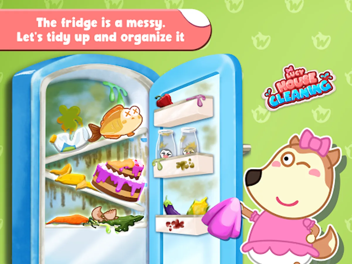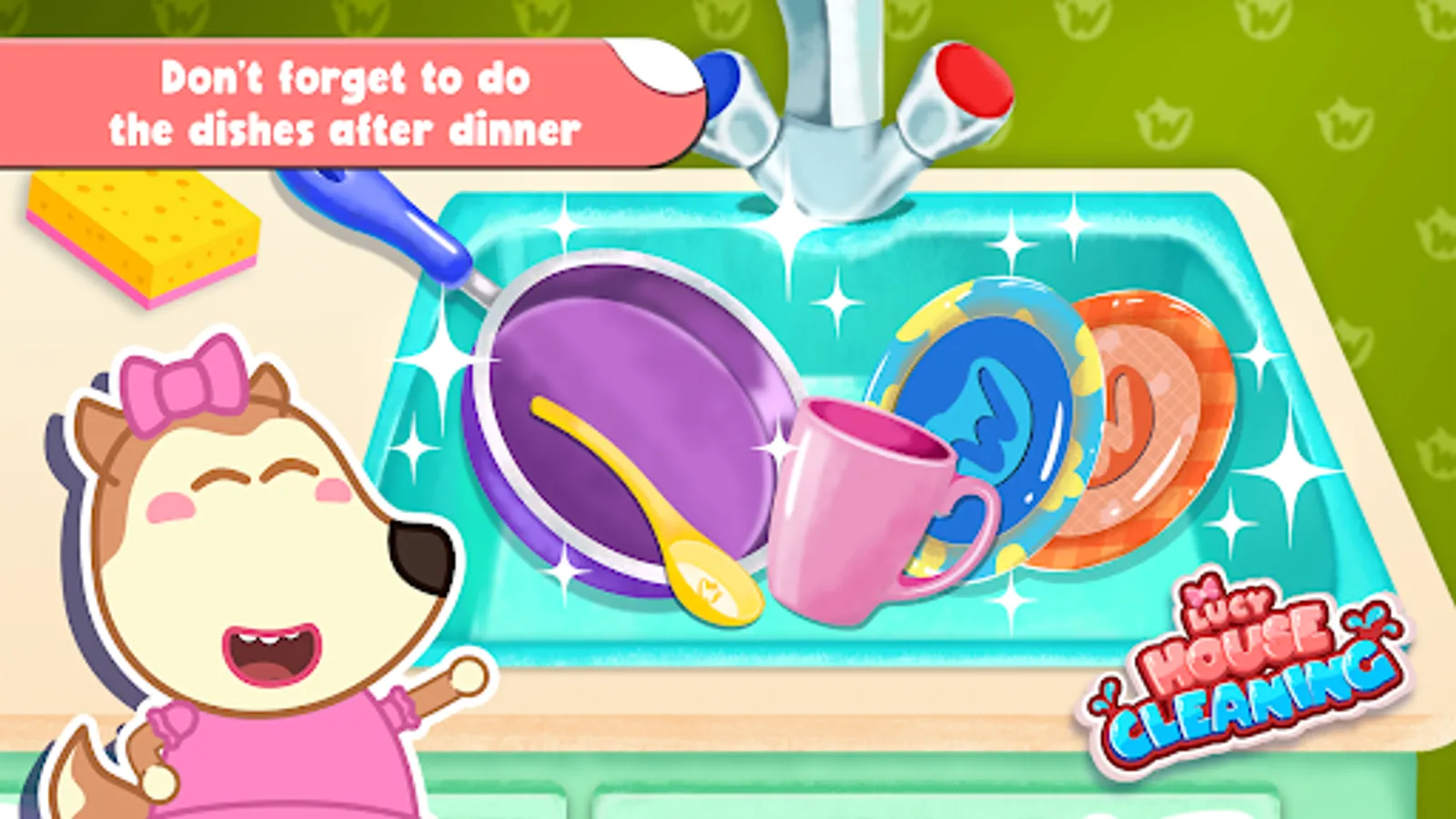 This cleaning game, home scape game is about Lucy's house, where has messy rooms. You have to help Lucy cleanup kitchen, tidy up bathroom, toilet, restroom, wash clothes, do the dishes, clean the fridge. Let's make her sweet home beautiful again. Put things away, organize everything in the house, tidy up and cleanup, that's so funny and joyful.