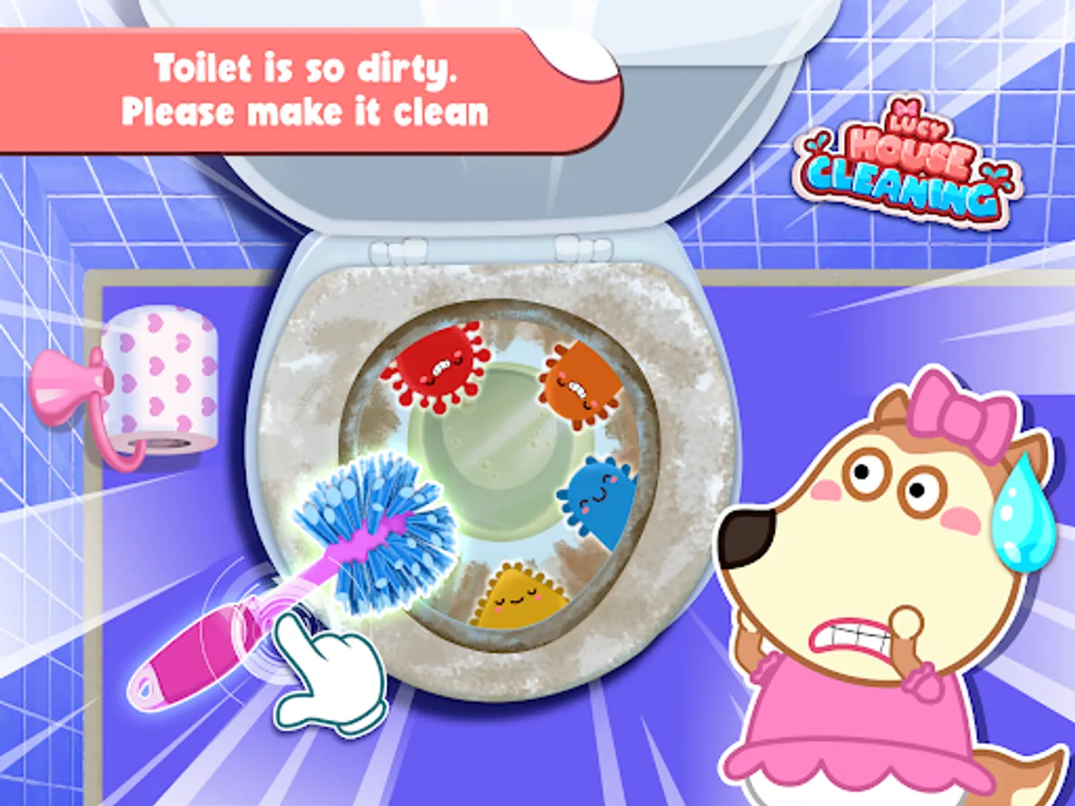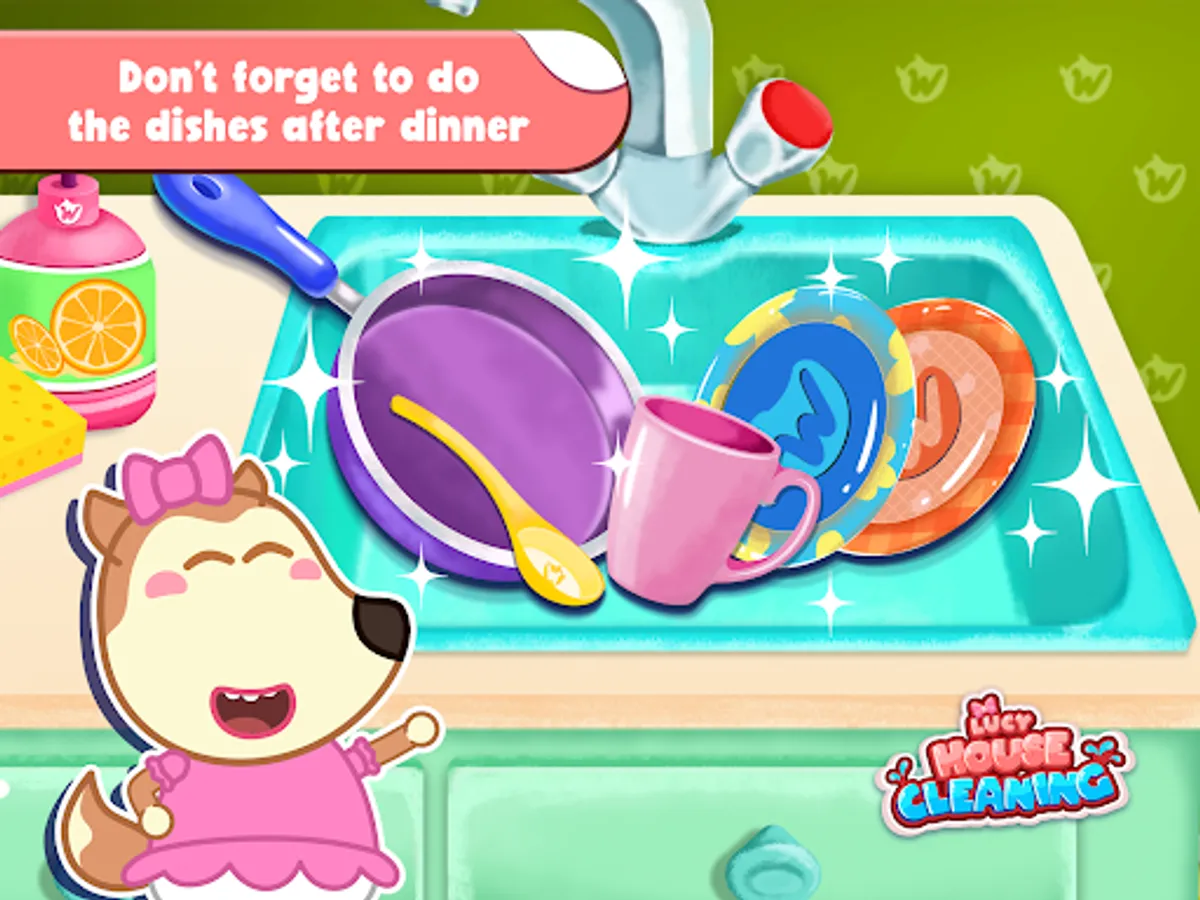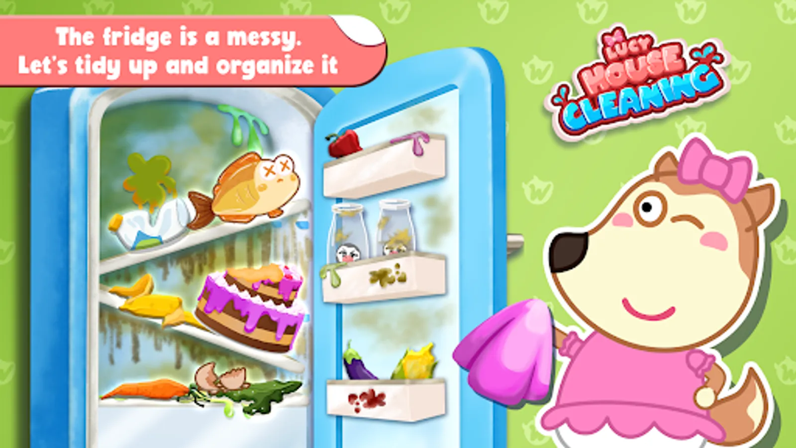 This cleaning game, home scape game is about Lucy's house, where has messy rooms. You have to help Lucy cleanup kitchen, tidy up bathroom, toilet, restroom, wash clothes, do the dishes, clean the fridge. Let's make her sweet home beautiful again. Put things away, organize everything in the house, tidy up and cleanup, that's so funny and joyful.