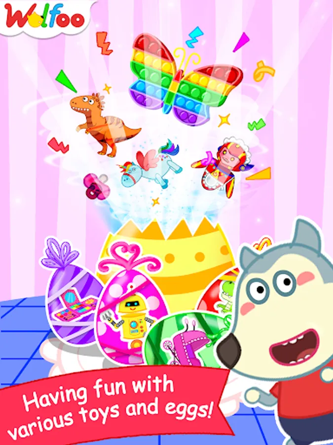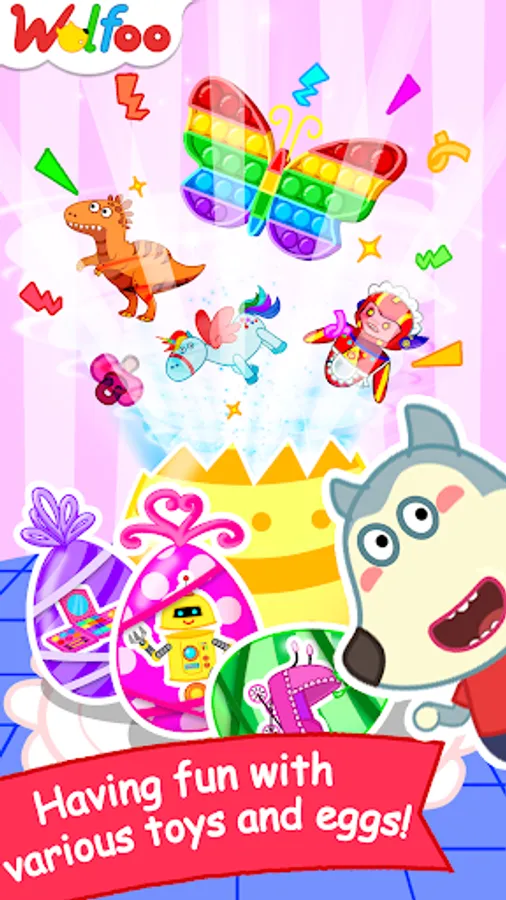 ▶ Tap on the colorful egg to collect a variety of surprise toys such as princess Pop it, dinosaurs, and magical creatures.