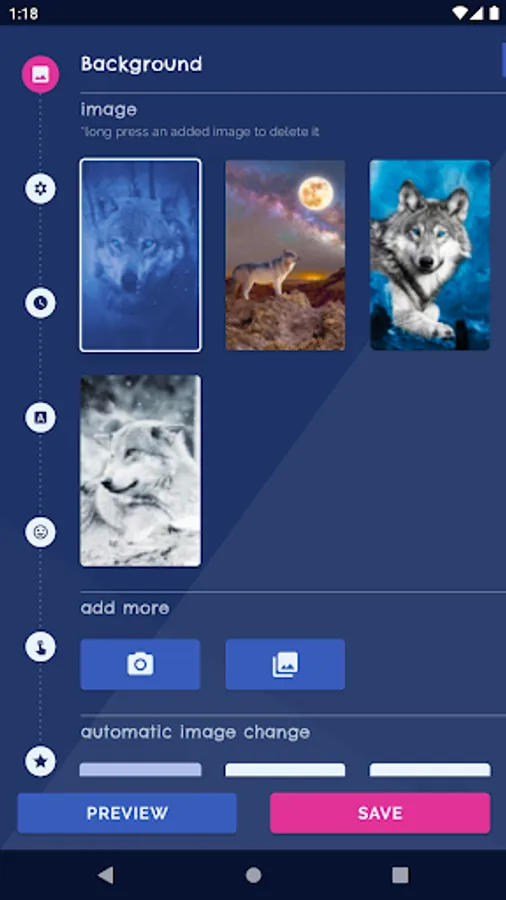 Wolf Live Wallpaper 🐺 Night HD Wallpapers has multiple moving wallpapers with brave animal and moon glow images, wild wolf backgrounds, dark night HD wallpaper, multiple customize options like background changer, frames, animated shiny stars, magic touch, analog clock, emoji, your name and more, that work on the lock screen and they are all FREE!