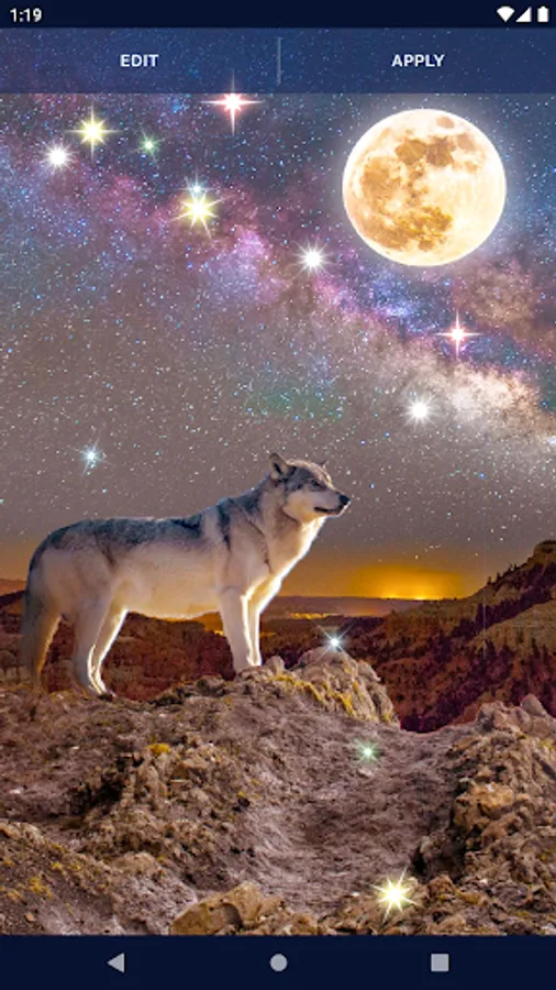 Wolf Live Wallpaper 🐺 Night HD Wallpapers is a free wallpapers app with HD backgrounds, clock, magic touch, emoji, 3D wallpaper, animated shiny stars and more!