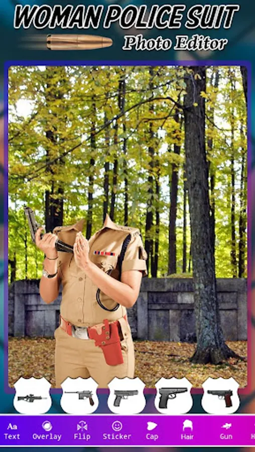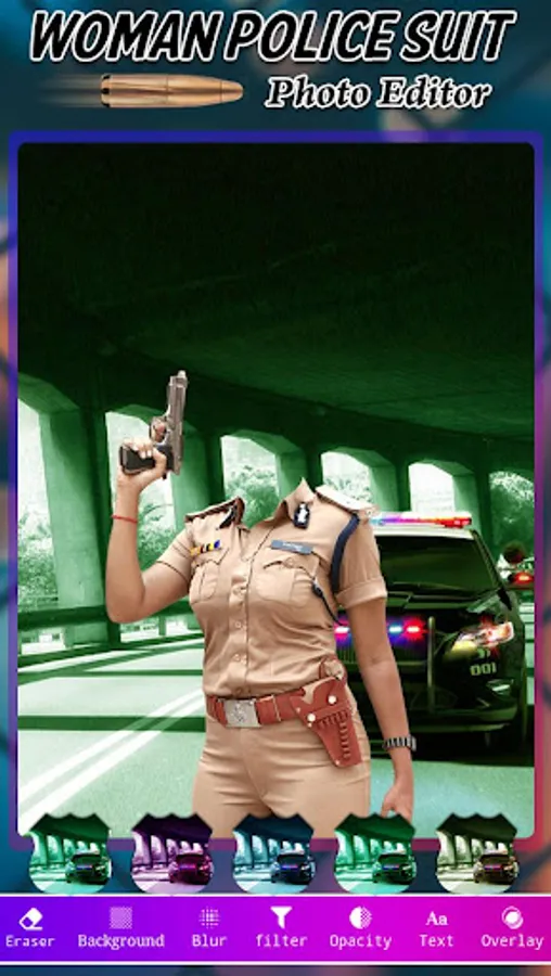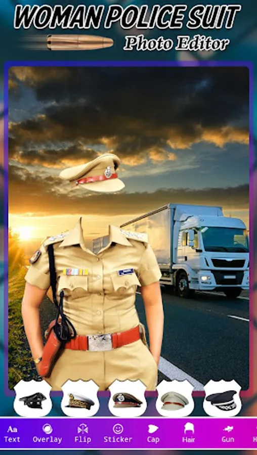 Woman Police Photo Suit app which have high quality police special background images and amazing stickers for photo editor police getup change like police caps, gun, police cars, police bikes.