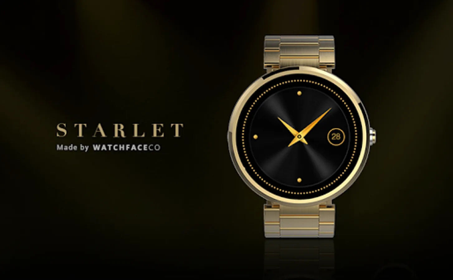Straight-off the catwalk Starlet is both glamorous and modern at the same time. This golden watch face makes your Android Wear smartwatch a timeless masterpiece.