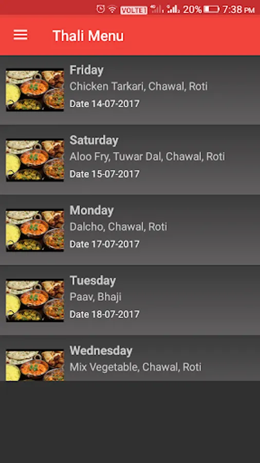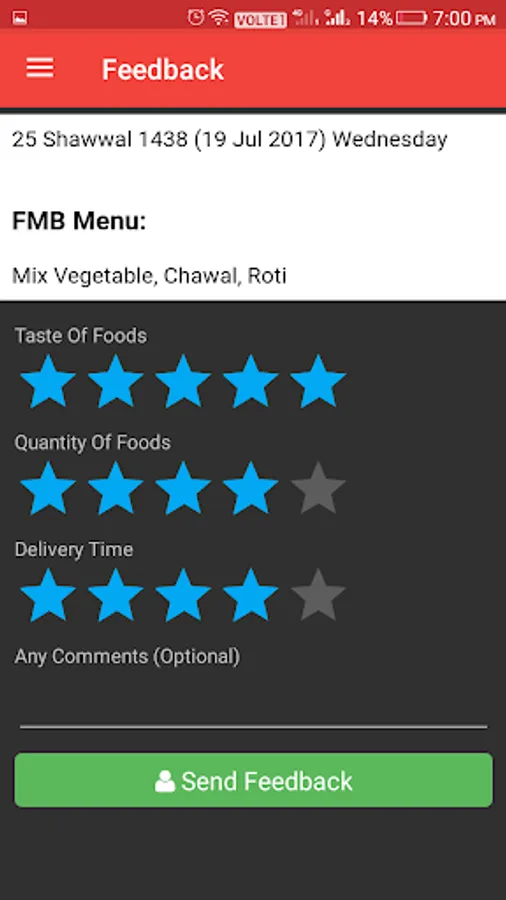 * FMB Skip Thali (If you are going out and won't be having thali, this option let's you inform the FMB team helping them control food wastage.