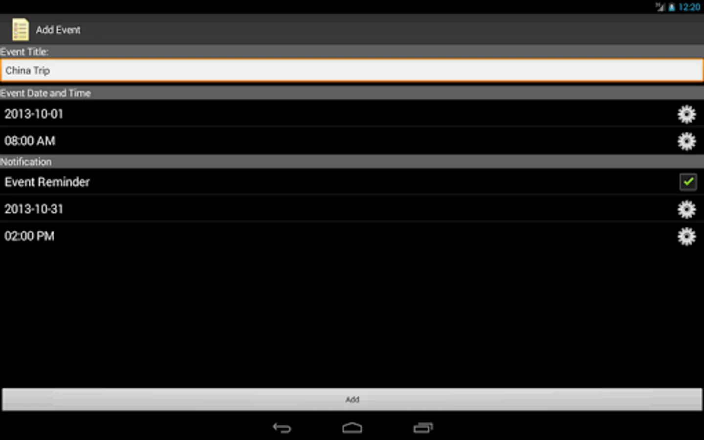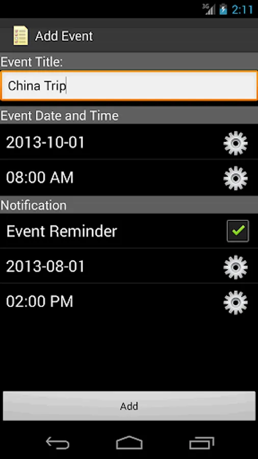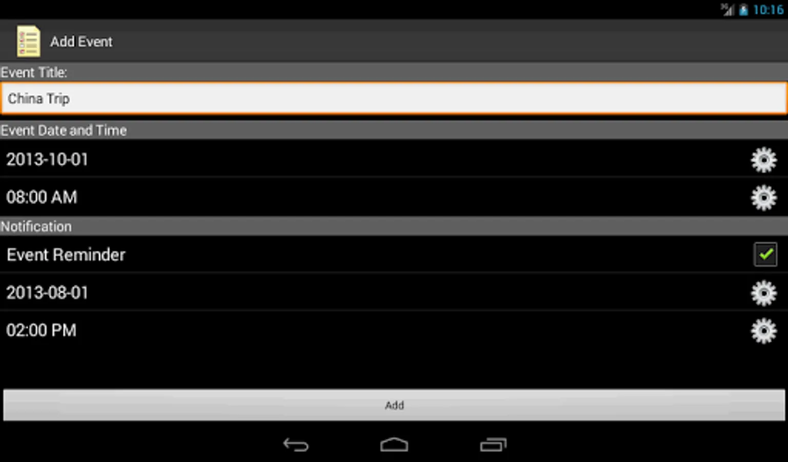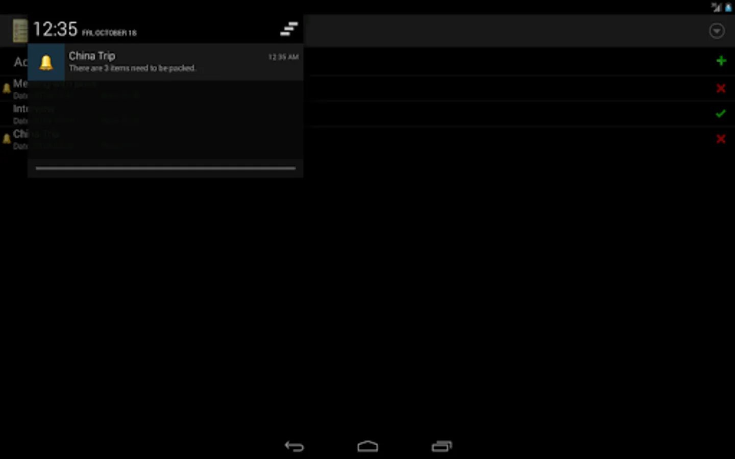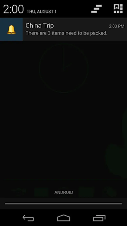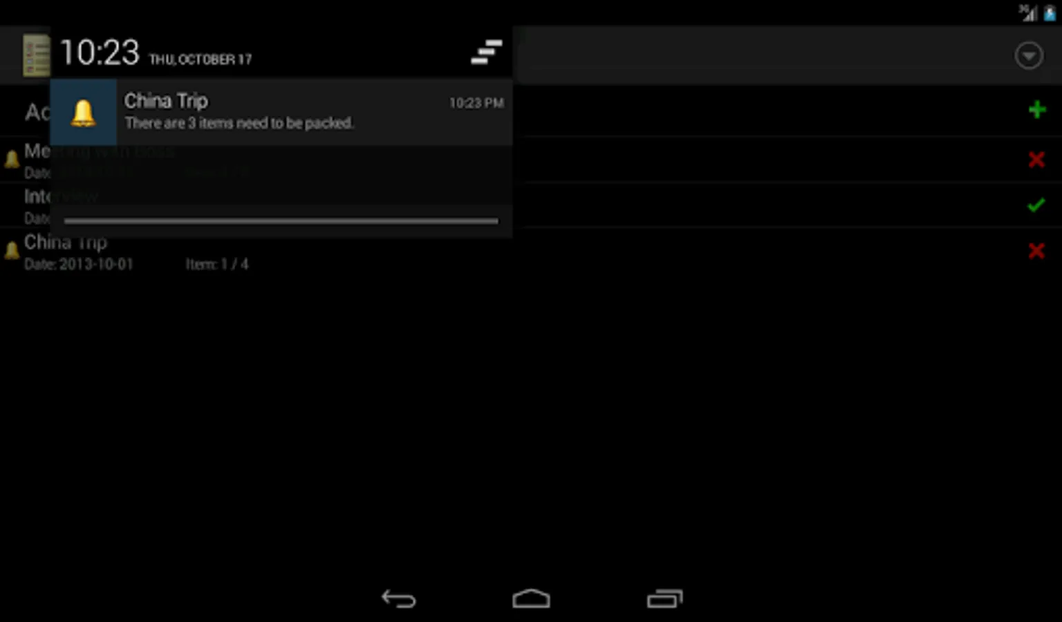 Alarm function is included in CheckList Reminder. User can add an event reminder to events with time set by the user. Checklist Reminder will send a notification to the user on that time to reminder the user about the event. In the notification, CheckList Reminder will report the number of unpacked item. The user can click on the notification to check the item list of the event. The user can easily understand the status of the item packing of the event. With the Event Reminder, the situation of forgetting to pack items for event can be prevented.