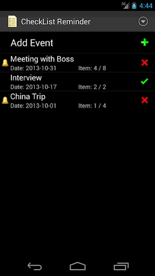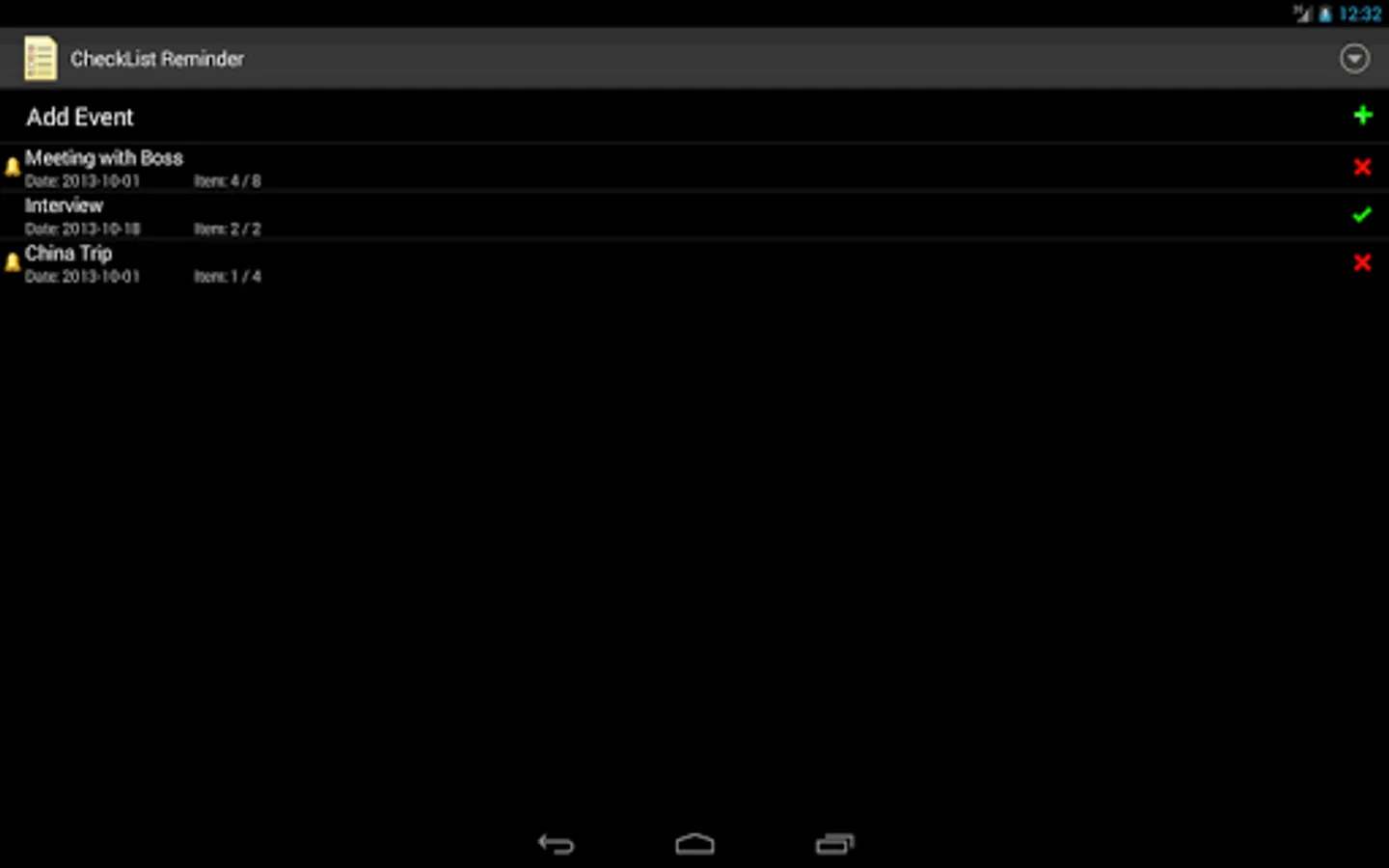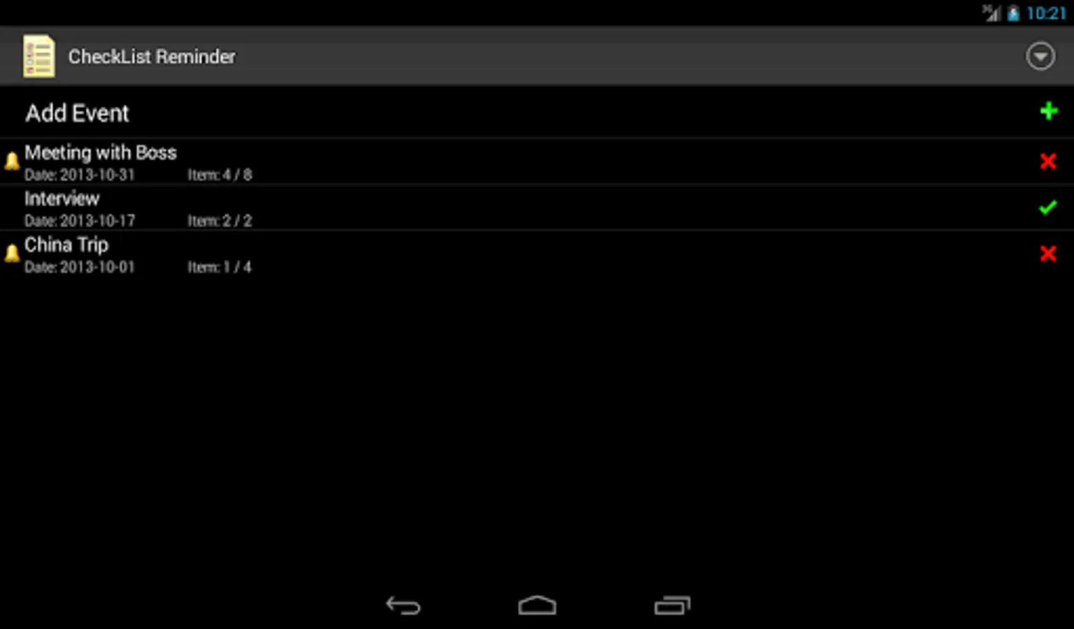 CheckList Reminder is an application which provides electronic checklist service. User can build a checklist for any events with Checklist Reminder. Comparing to paper-based checklist, Checklist Reminder is more environmental friendly and more convenient for the user that the user can access to the checklist anytime and anywhere. User can also add, edit and delete items and events freely as well as user can check the status of items of an event anytime.