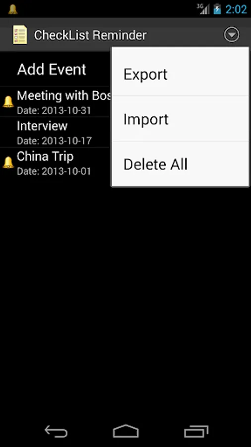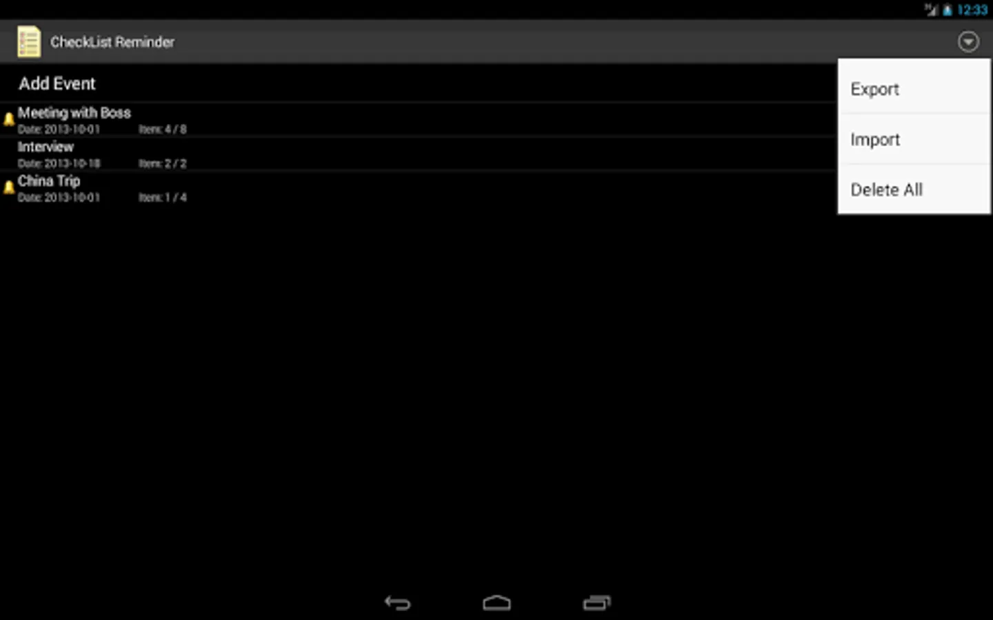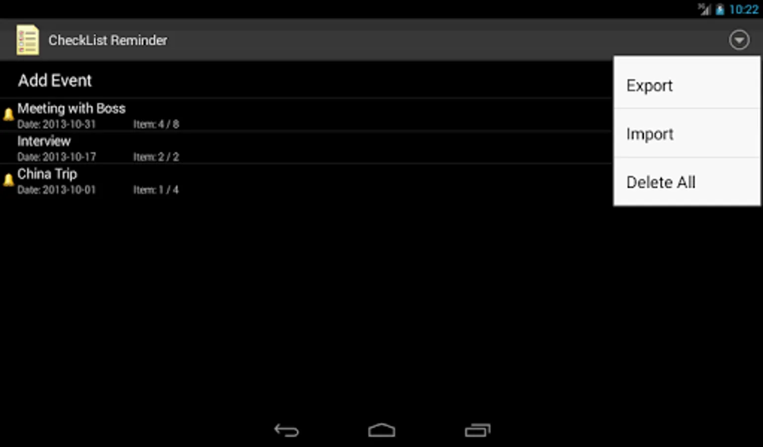 User can export and import the data for backup use. The data in CheckList Reminder can be transferred from device to device by importing the data which exported from the original device to the new device.