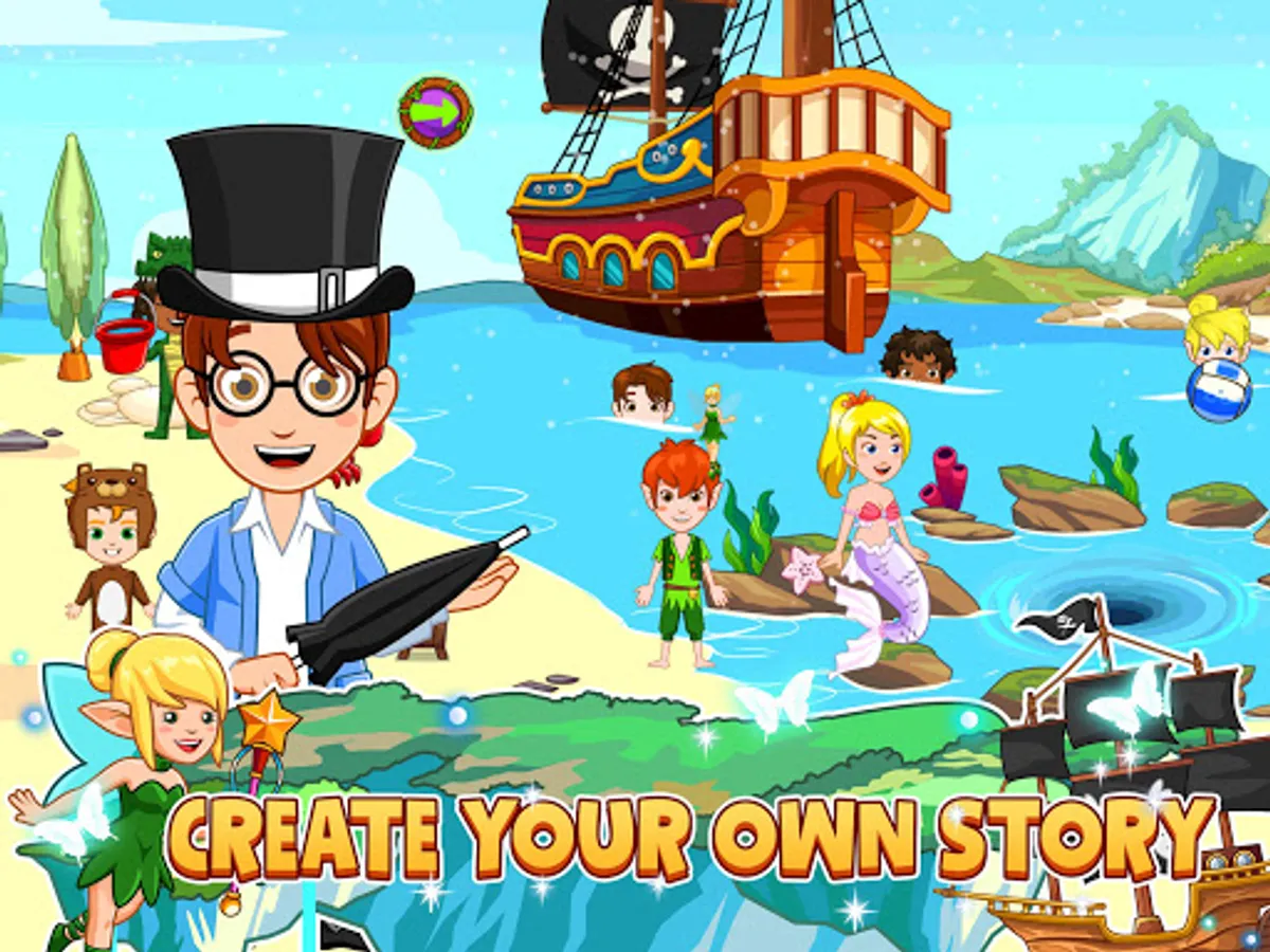 Wonderland is a magical game where you create your own fairytale adventure and play out stories you create. Peter Pan, Wendy, Captain hook and the lost kids are ready for a new adventure. Explore the lost kid's tree house, visit the pirate's ship and discover hidden treasures. Filled with lots of new characters and locations this game will connect to other Wonderland games making your fairytale bigger than ever!
