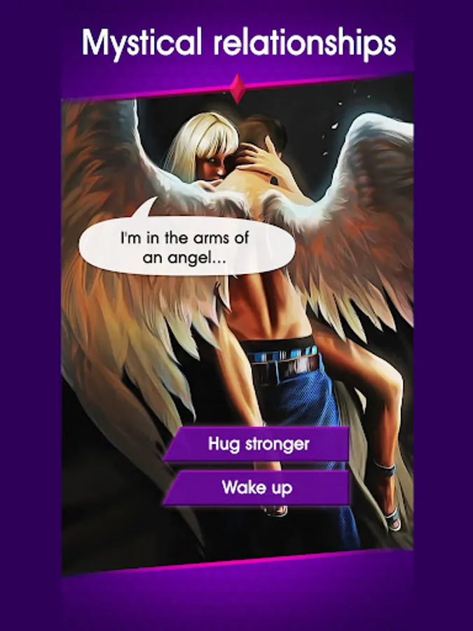 A beautiful romantic interactive story game to help you get your wings! A visual novel about painful choices between light and dark, sex and passion, between two stunning men, an angel, and a demon. All chapters bring you an emotional experience, will make you hang somewhere between heaven and earth to experience this touching story of a woman's desires, to experience passion without any taboos, to plunge into the romantic world of adventure.