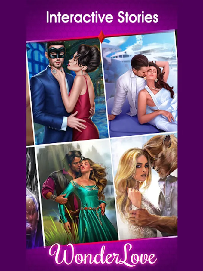 WonderLove - love story games for true fans of interactive novels! Our male characters will show up to you in your most romantic fantasies. In every episode your choices influence the storyline and romantic relationships with handsome men and other love games characters. Our episodes will make your heart skip a beat.