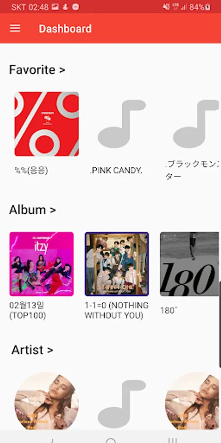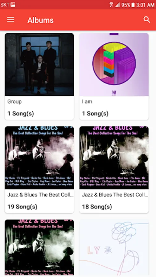 You can find your song by various categories such like Songs, Albums, Artists, Genres, Folders. Also, you can change your player's theme color!