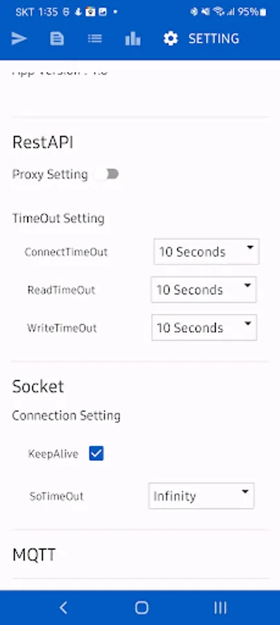 and protocol settings such as Proxy setting, timeout setting for Restful API