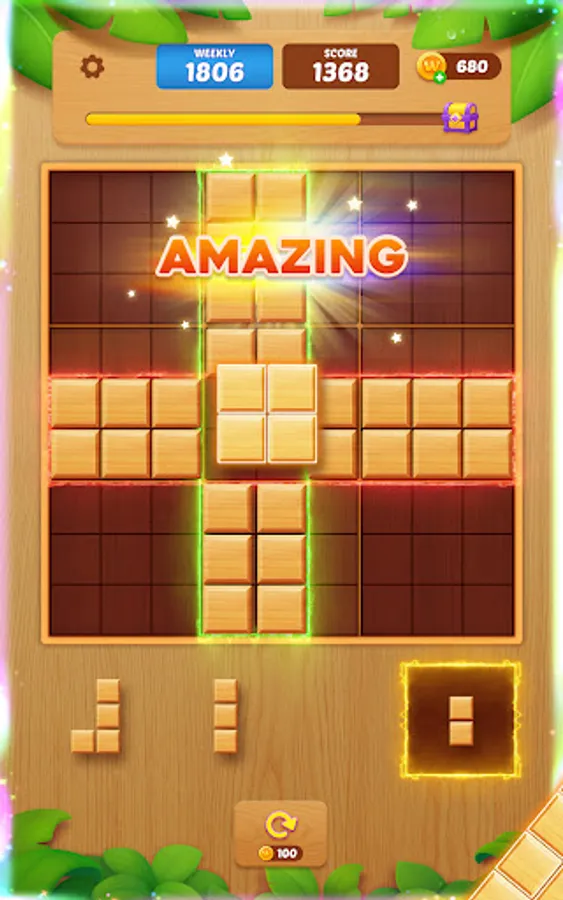 ※ If you move the woody blocks into a line (a row or a column) or 3x3 square, these cube blocks in this line or square will be removed, then you will get the extra points + the basic points.