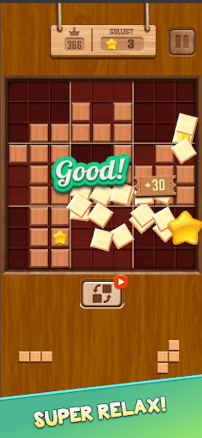 1.Move and match blocks on the 9*9 grid board to clean the board.