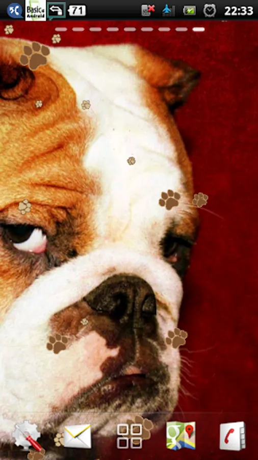 watch the cute bulldogs breathing at your android screen. bulldogs lwp is a cute live wallpaper featuring a retina wallpapers of cute bulldogs dog photo and flying dog paw which is cute and funny, perfect for dogs and animal lover such as you. get this bulldog wallpaper and dog live wallpaper now. bulldog is the name for a breed of dog commonly referred to as the english bulldog. other bulldog breeds include the american bulldog, olde english bulldogge and the french bulldog. the bulldog is a muscular heavy dog with a wrinkled face and a distinctive pushed-in nose. the american kennel club (akc), the kennel club (uk) and the united kennel club (ukc) oversee breeding standards. the bulldog is a breed with characteristically wide head and shoulders along with a pronounced mandibular prognathism. there are generally thick folds of skin on a bulldog's brow; round, black, wide-set eyes; a short muzzle with characteristic folds called rope above the nose; hanging skin under the neck; drooping lips and pointed teeth and occasionally, an underbite. the coat is short, flat and sleek, with colors of red, fawn or white, brindle and piebald.