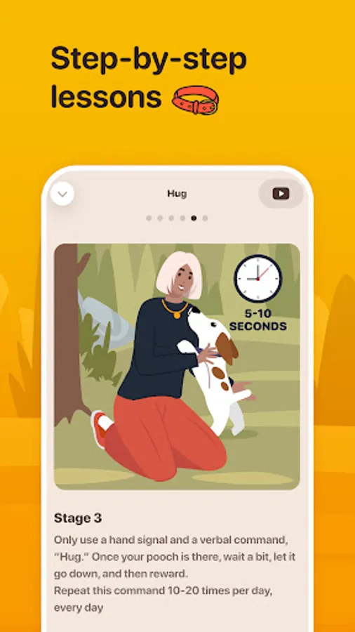 - Dog training activities — Learn tonnes of easy dog commands with step-by-step video and audio lessons.