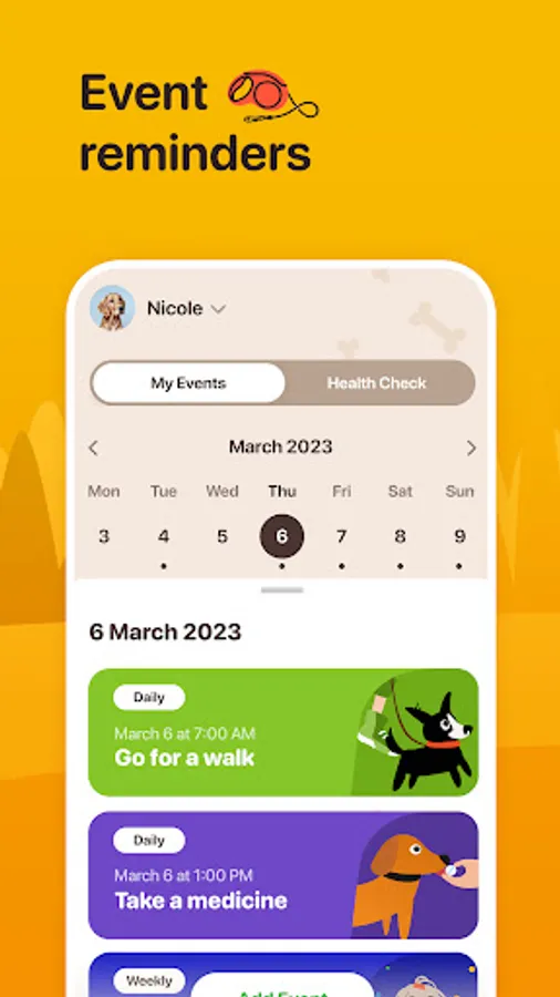 - Profiles for each dog — Keep track of each of your pets with individual profiles, where you can monitor their health and check their dog training stats.