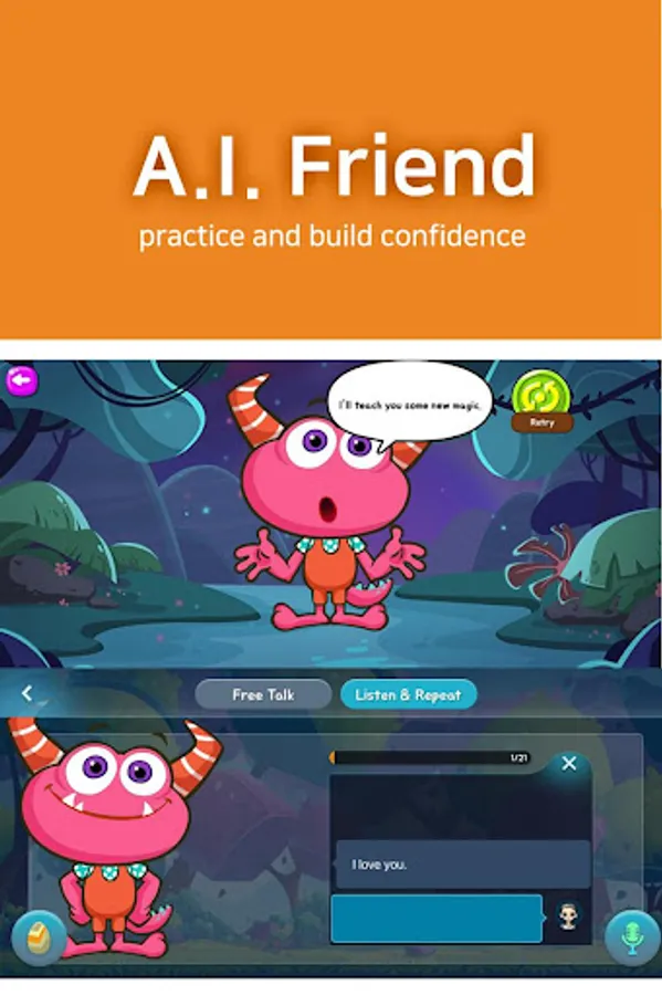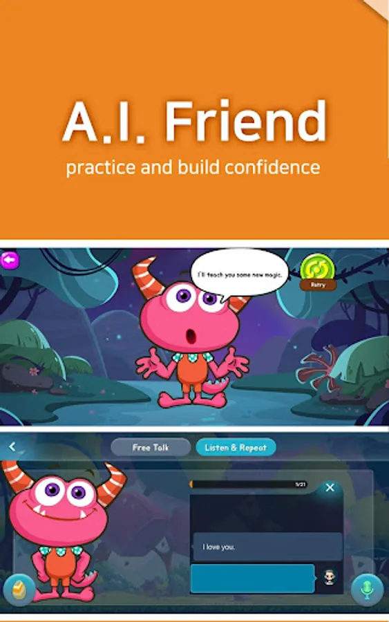 - Practice speaking with A.I. friend Monty: Listen & Repeat, Free Talking