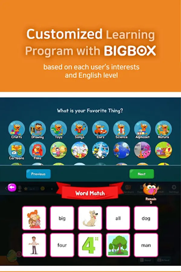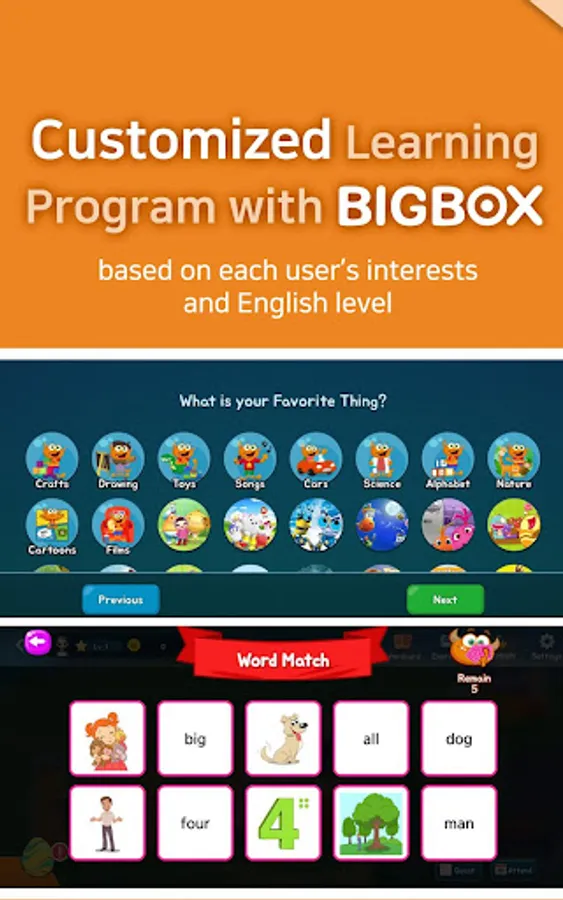 BIGBOX is a customized educational service that allows you to learn English through video viewing and various mission-based learning.