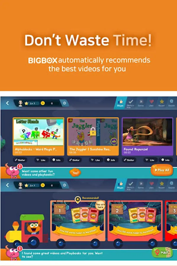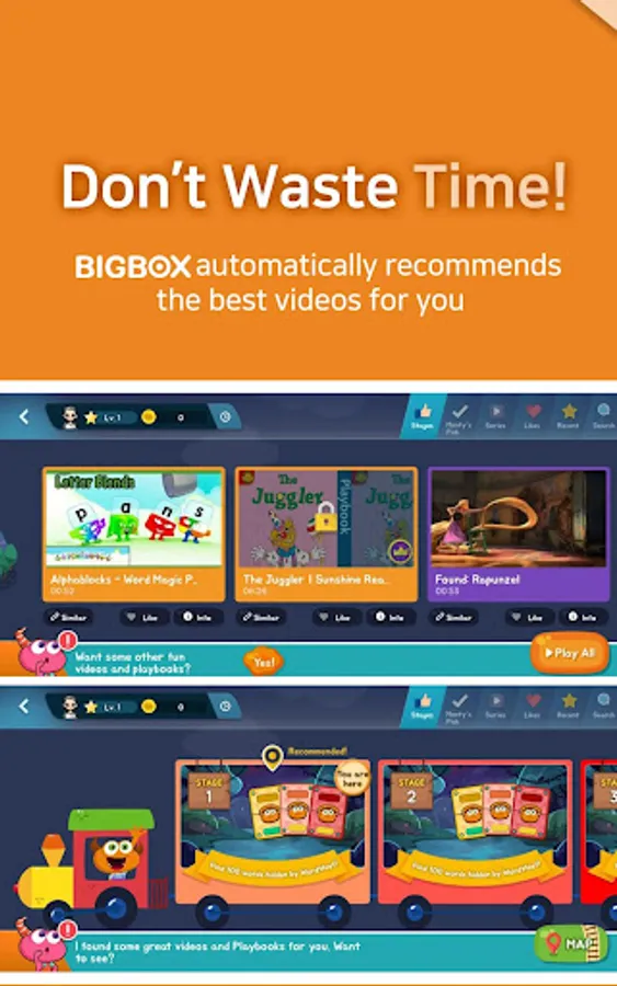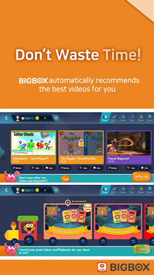 - 1,300 videos (badanamu, pororo, Tobot, spookiz, and more.)