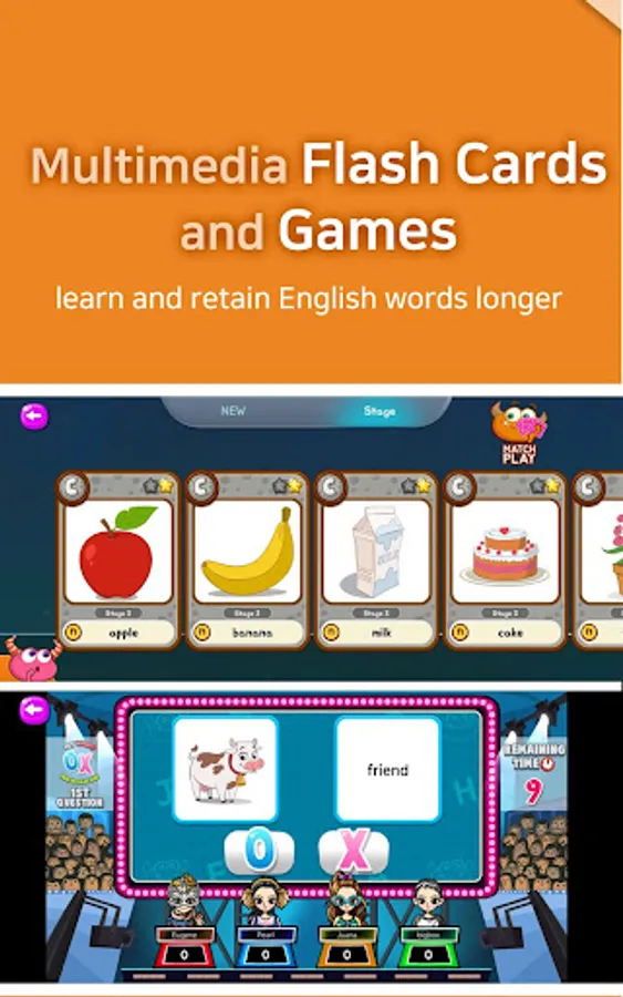 - Self-motivated learning support: Game-like learning system such as a daily mission, word challenge, and more