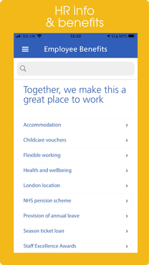 This app is designed to help you access the latest information, updates, staff benefits and health & wellbeing advice straight from your phone, wherever you are.