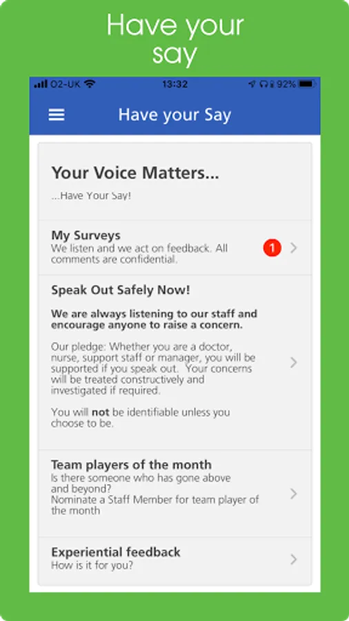 The app is free to download, and also gives you access to search our staff directory for contact details, info on the latest events taking place, as well as staff surveys to help us make your experience at work as good as it can be and in turn, help you keep Putting Patients First.