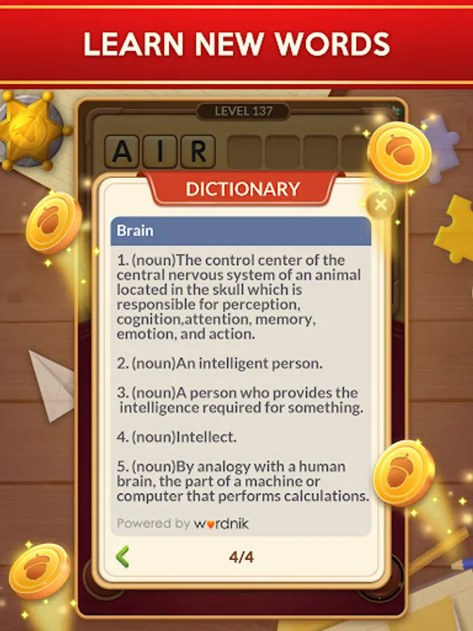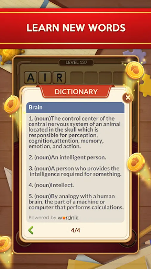 Relax your mind. It starts off easy, you can play more than 6000+ fun word puzzle levels and find 140+ attractive collectible cards.