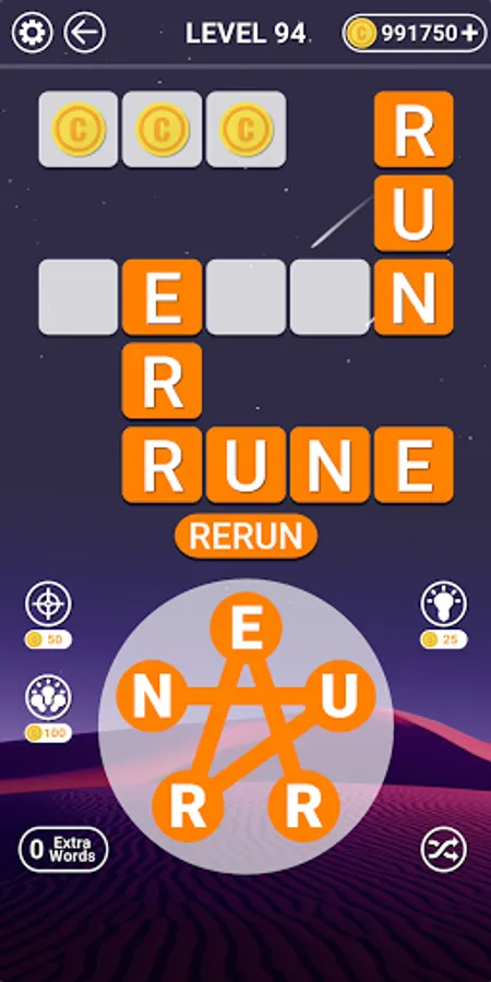 - Find extra words to collect coins in the word game.