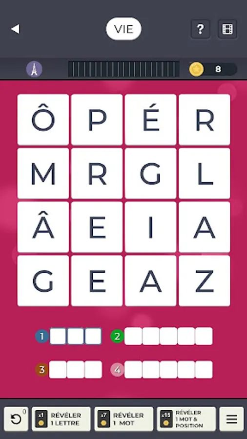 ★ Fill in every block with a word! Earn coins when you discover star words.
