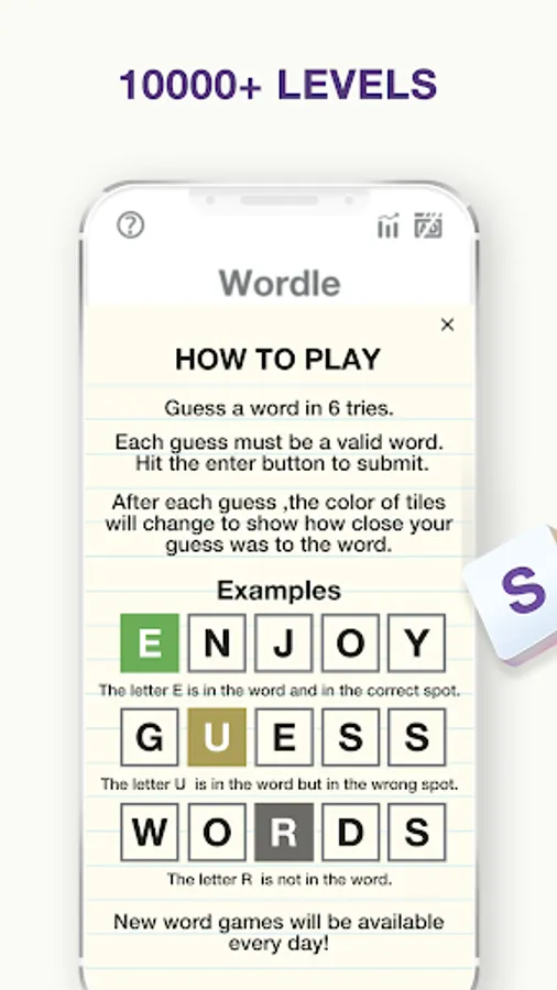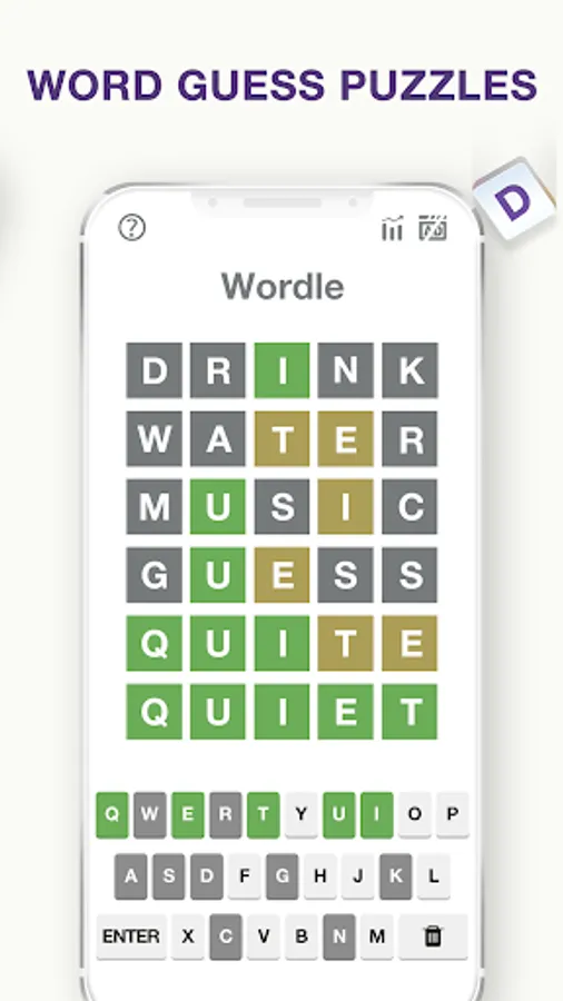If you are a huge fan of word games ,you shouldn’t miss Word Guess. The rule is simple yet gives you endless fun. You have 6 tries to guess a five letter word ,at each guess ,the color of tiles will change to show how close your guess was to the word.