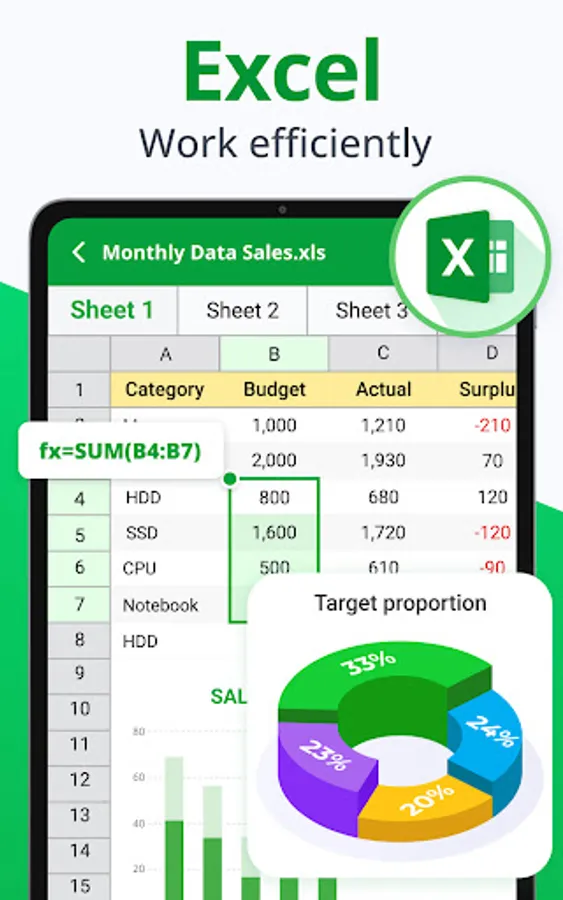 - Work on the go: view all spreadsheets anytime, anywhere, even offline