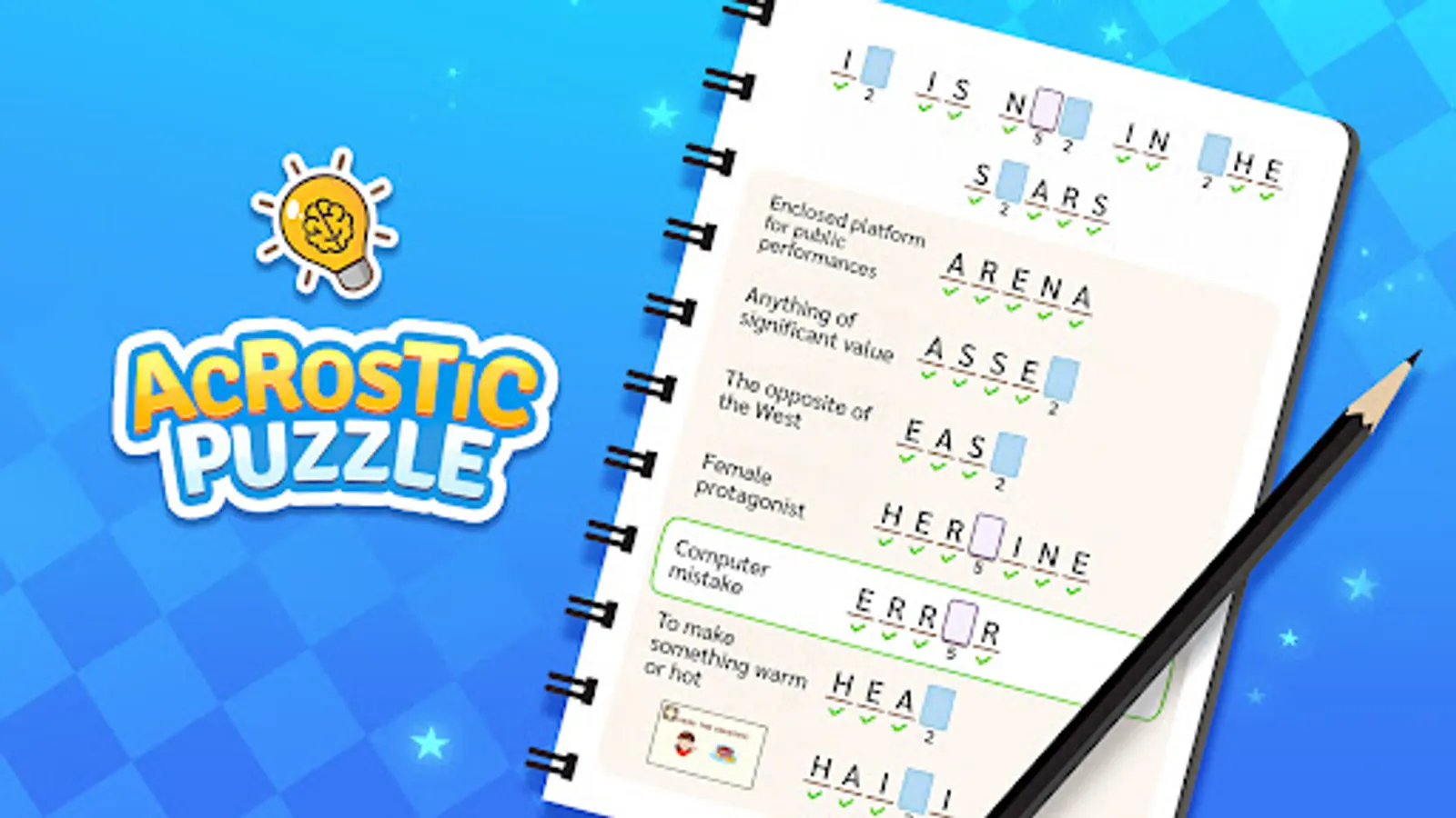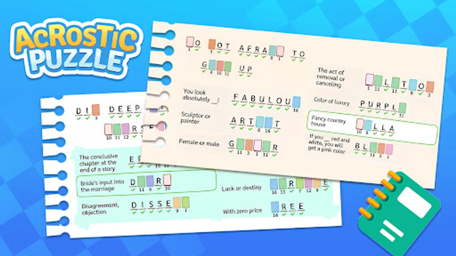 "Acrostic Puzzle" is a perfect crossword explorer tool for passing the time. With various themes and puzzle types, cross word puzzle players can enjoy challenging crosswords to the fullest. Whether during leisure time or on a vacation trip, this cross word puzzle game can be easily played, allowing you to indulge in endless fun.