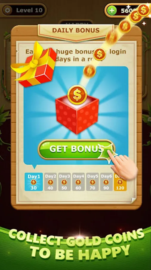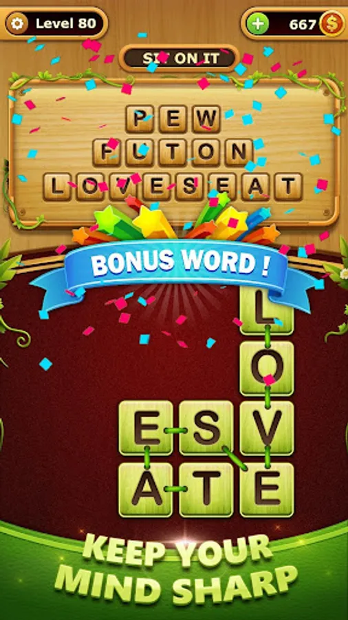 The aim is to find all the hidden words. The words on each level are related to a category theme.